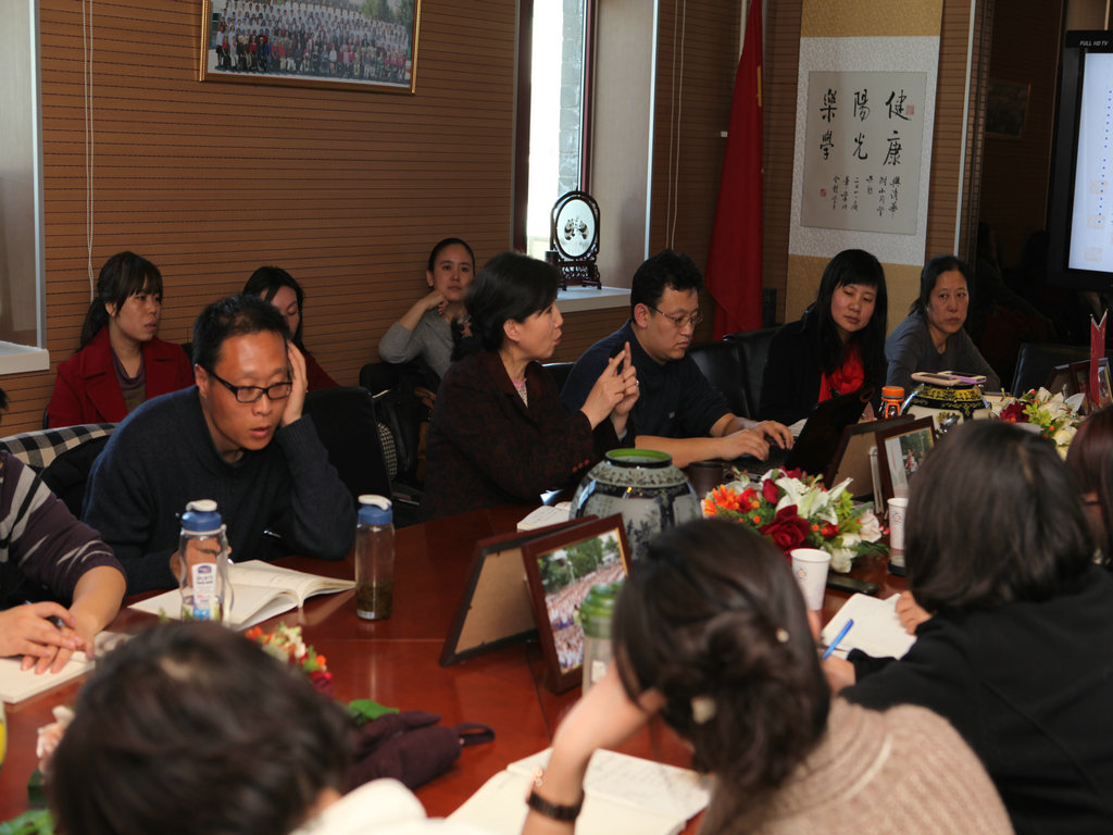 2012年3月24日下午一时许,清华附小三十余名教师在会议室召开“1+X”课程研讨会,中国教育科学研究院基础教育研究中心主任陈如平与清华大学外语系范文芳教授等嘉宾,也一起出席了会议。