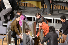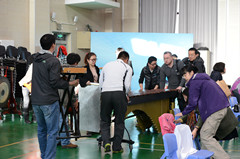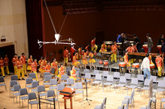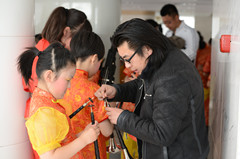 2013年4月15日,两年一届的北京市艺术节金帆团展演活动在解放军军乐厅拉开了序幕,这是我校自2011年被北京市教委正式挂牌为金帆民乐团以来第一次参加金帆团级别的展演活动。我校金帆民乐团经过认真紧张的备赛,从选曲、排练、走台等等一系列紧张而有序的准备工作,终于在这次展演比赛中以《黄河之水天上来》、《爱我中华》两首乐曲取得北京市金帆项目展演一等奖的好成绩!这项成绩与诸位乐团团员、家长、学校及外聘专家的努力分不开的,这次比赛家长同志们的行动令学校及老师们感慨万千,不论男女老幼齐上阵在规定的两分钟之内把所有的乐器及座椅摆放到规定位置,为了摆台我们在赛前专门在我校联盛馆进行了带妆实际彩排。下面以一组图片来回忆上学期刚刚过去的比赛。