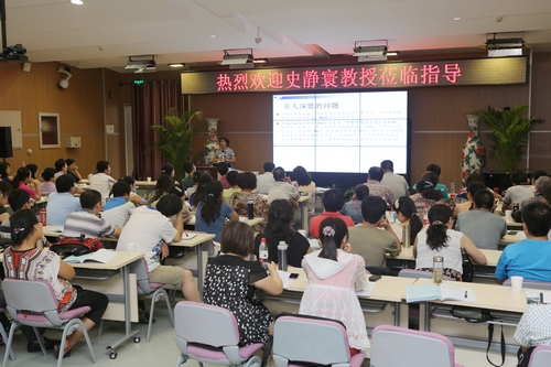 史教授站在世界教育发展趋势和教育对人发展作用的原点上,聚焦海淀区的个性化教育研究课题。史教授的讲座,首先引入最先进的国际教育模式——MOOC,并由此引发对于中国教育危机的反思。讲座中既有大量的案例,又有可操作性实施流程,深入浅出,冲击人心。教师们纷纷表示受益匪浅,尤其是对我校“1+X课程”的建构与实施启发很大。