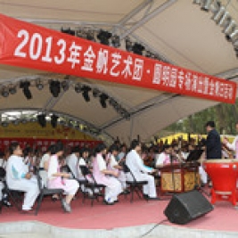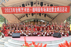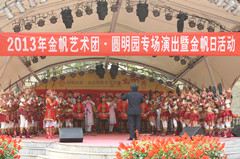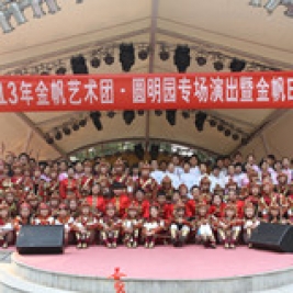 2013年10月27日下午2点整,为庆祝北京市金帆艺术团建团26周年,“金帆日--清音华韵》联合专场民族音乐会”在“圆明园”春泽斋成功举行。来自清华附小金帆民乐团、清华附中金帆民乐共140多名小演奏员为到场的200多名领导、家长、同学和游客们奉献了一场精彩的民乐盛宴。