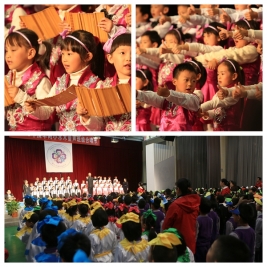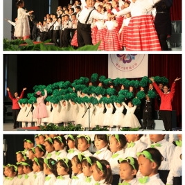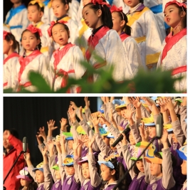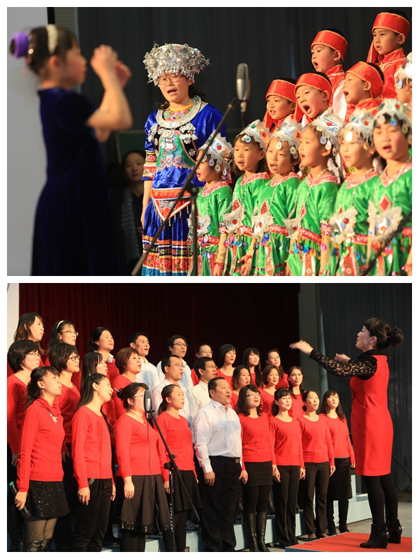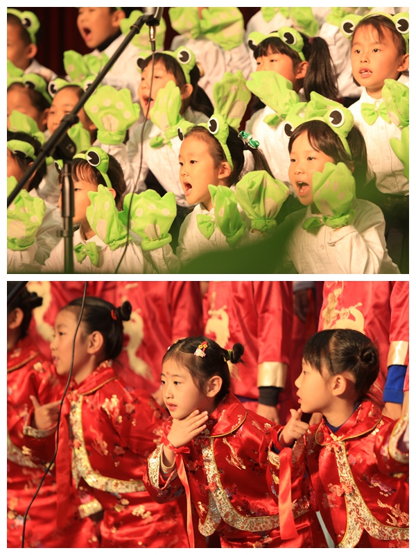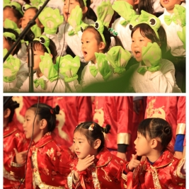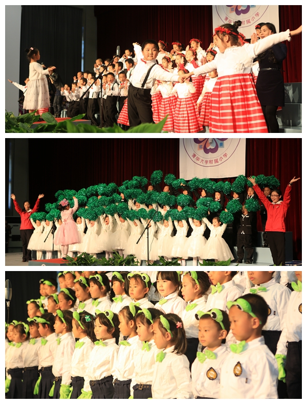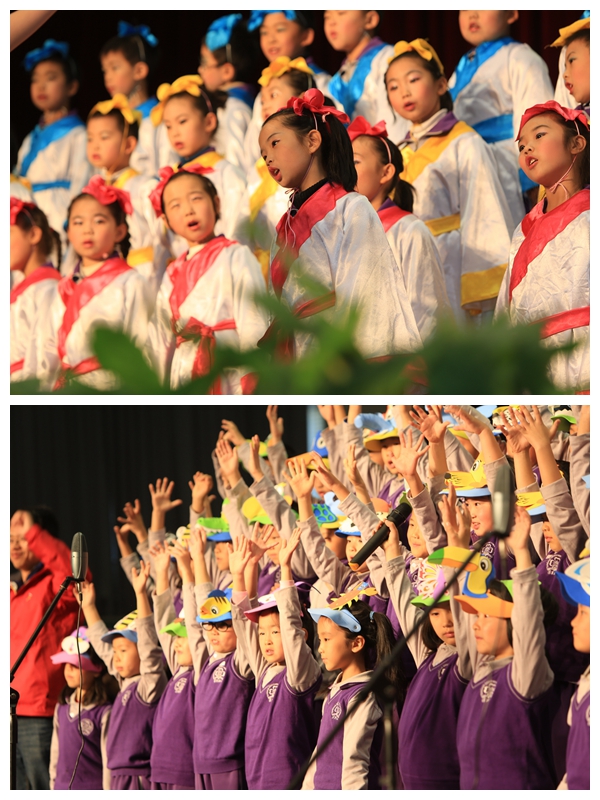 别看一年级的同学年龄小,可是动听的歌声赢得了家长和老师们一次又一次热烈的掌声。站在舞台上的同学们,俨然一个个小歌唱家,那灵动的眼神,那合着节奏的演唱,那活泼的动作,让家长们称赞不已。他们演唱的歌曲有韵味十足的古诗吟诵,还有风格鲜明的少数民族歌曲,也有活泼欢快的歌谣。每个班除了表演自选曲目外,还满怀激情地演唱了清华附小自编自创的《三字诀》,那清脆的童音飘出了联盛馆,在校园里轻轻回荡。