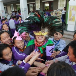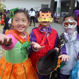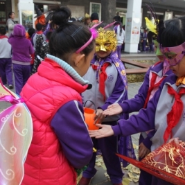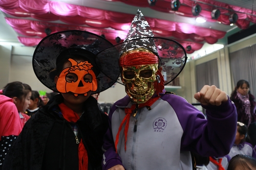 10月31日至11月6日,我校开展了万圣节庆祝活动,全校师生都参与到静态和动态活动中,制作杰克灯、万圣节画报,听讲座,唱万圣节歌曲,看经典万圣节电影等等。在家长的积极配合和精心装扮下,11月6日下午,学生们更是穿着搞怪的行头,打扮成各种鬼马精灵的样子,提着自制的南瓜灯与同样精心装扮过的老师们一起玩讨糖游戏。孩子们带着面具、穿着隆重的万圣节服装,嘴里喊着“Treat or Trick”,伸着小手,到各个充满节日氛围的教室讨糖,玩得不亦乐乎。让同学们最兴奋的是,窦校长也装扮了起来,口袋装满了糖果来到孩子们当中,跟孩子们一起说Happy Halloween和Trick or treat,陪伴着孩子们一起体验快乐,感受异域文化。讨糖游戏将活动推向高潮,在美丽的校园演绎出异常精彩刺激的节日画面。
