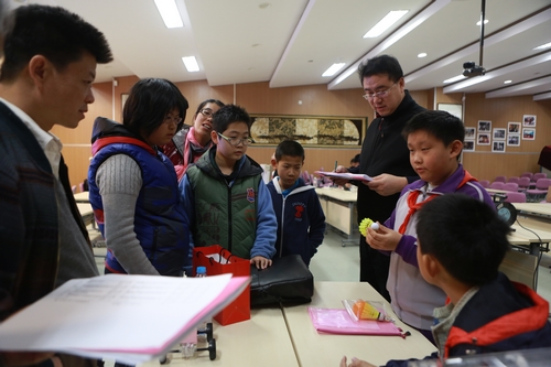 为提高青少年的综合素质,激发学生的自主探究和创新实践能力,11月9日周六,清华附小承办了海淀区“青少年科技创新大赛”。此次活动自10月份向全海淀区中小学生下发《征集作品通知》以来,历时一个月,共征集作品“发明创造”(工程类与技术与设计类)作品计90余件。11月9日,评委会成员来到清华附小主会场进行评审工作。其中我校二年级(4)班官天泽同学与四年级(6)班李云皓同学的作品从众多作品中脱颖而出,获得了评委会的一致好评。