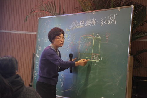 讲座开始从案例《三角形三边关系》说起,引导教师进行思考:课堂上我们除了教给孩子知识,还能给孩子点什么?最终数学老师与郭老师达成共识:数学课堂应该变得“缓慢”起来,要打开孩子思维的路径,让孩子学会思考而不是学着去验证。接下来郭老师用一个个生动案例从知识的生长点、思维的支撑、学习的困难、学习的问题、发展的后劲五方面帮助老师们去剖析如何寻找课堂的“缓慢点”,我们要改变思考问题的方式,要了解并分析学生的生活经验和学习困难,让我们的课堂教学有过程、有味道、有生命。