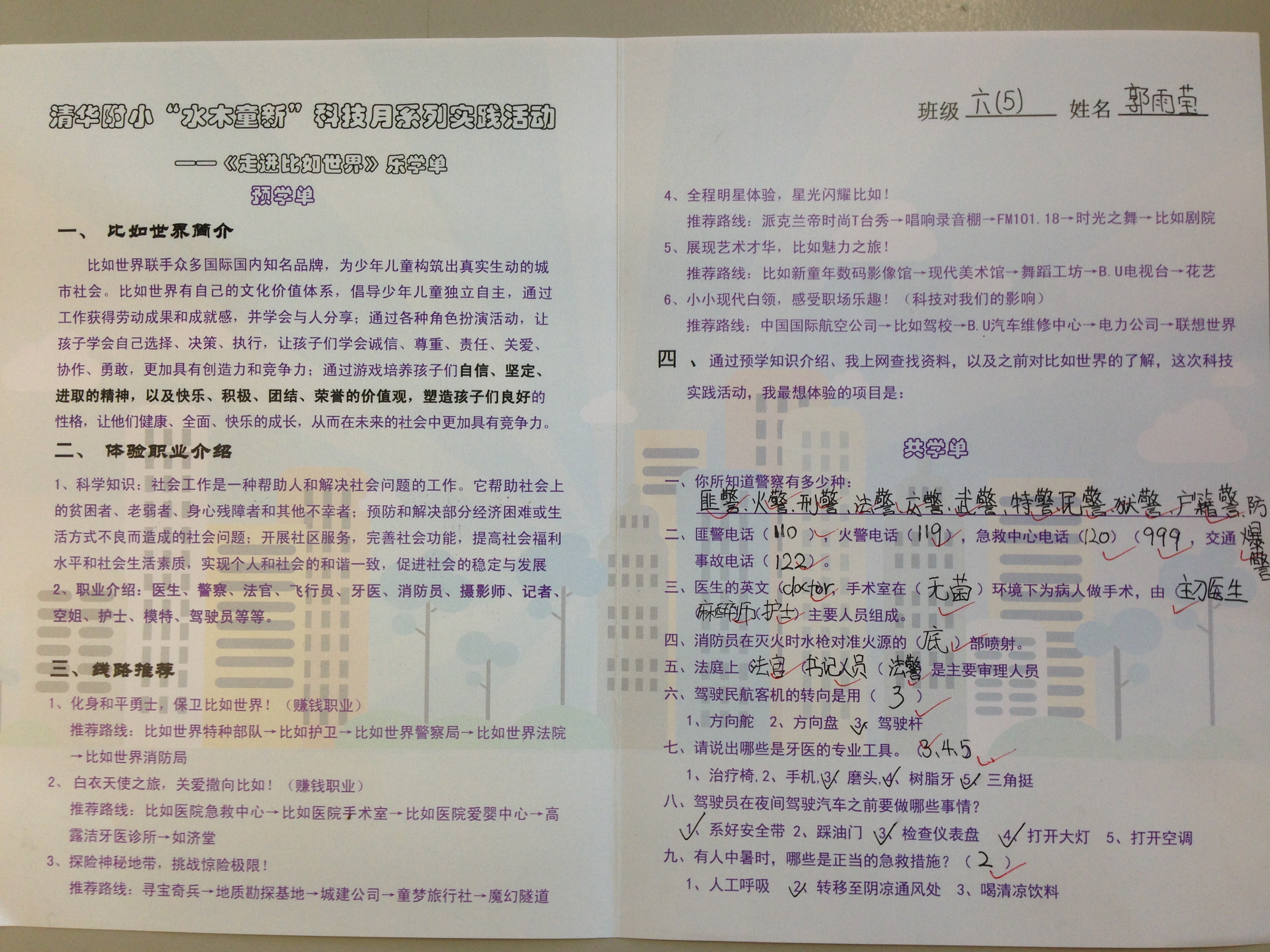 正逢附小科技月,高年段的孩子们整装齐发,一起出发前往“比如世界”活动中心。早晨八点,同学们从学校东门乘车出发,一路上欢声笑语,车厢里洋溢着欢乐的气氛。到达“比如世界”之后,同学们按照之前定好的分组,三三两两聚成一队,在导游的带领下开始体现在“比如世界”的生活。