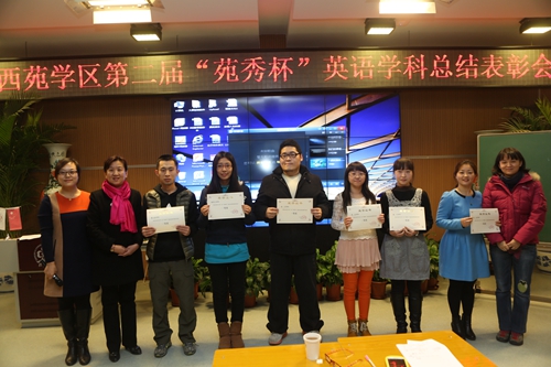 两节展示课后,刘利主任和李静 老师为获奖教师颁发奖状。随后李静 老师带来了精彩的讲座,她指出:英语教学要有系统性,英语老师要具备课程意识,将比赛课成功经验迁移到日常教学中,成为每日作用于学生的课程。讲座中英语组长黄耀华 老师和马艳红 老师向与会 老师介绍了我校“1+X课程”以及《乐学手册》和《英语质量目标指南》的使用,李 老师充分肯定了我校“1+X课程”中英语学科的定位,并鼓励各校借鉴我校成功做法。