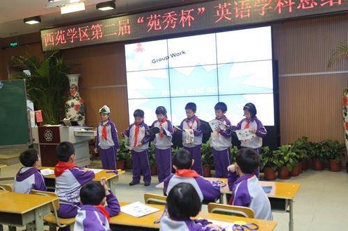 表彰会在杨莹老师简短而振奋人心的开场中正式拉开序幕。来自中关村二小的张蕊老师首先携我校二(7)班学生为大家带来了精彩的展示课In the Park。接着,我校范敏 老师携我校二(4)班学生为大家展示了绘本课Zack the Zebra。范老师纯熟的口语、灵活的课堂驾驭加上我校学生扎实的语言基础和机智的回答,为在场的老师们献上了兼具趣味性和知识性的妙趣横生的课堂。