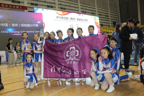 此次比赛我校啦啦操队是授国家体育总局体操运动管理中心,啦啦操竞赛委员会选派,代表中国参赛的小学代表队三支队伍中的一支。这也是我校健美操社团第一次参加这样高水平的国际赛事。最终我校获得了小学组技巧啦啦操季军的优异成绩,并取得代表中国参加2014年世界啦啦操锦标赛的资格。比赛中教练精心设计的动作,富有内涵的编排,被队员们以最佳的状态精彩演绎,扎实的基本功,赢得了裁判与观众的阵阵掌声。他们在赛场上尽情舞动,诠释了团队集体协作的力量和朝气蓬勃的精神风貌。在场下我们的同学们充分体现了国际视野,与各国的运动员进行交流和学习,而且他们还把学校的明星片送给了各国运动员们。