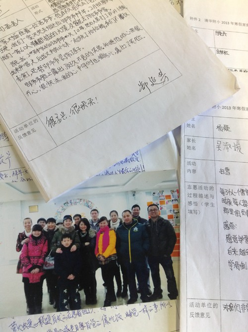 由于小学生的年龄特点,需要在监护人的陪同下才能走出校园开展志愿服务,我校充分挖掘家长资源,邀请家长积极参与,除了校园志愿者岗位外,寒暑假都会给学生留一份与家长们一起完成志愿公益服务活动的假期作业。学生与家长一起,走进社区敬老院,走进公益学校。形成了家校联手,社会联手,共同为学生埋下志愿者精神的种子,为学生聪慧与高尚的人生奠基。