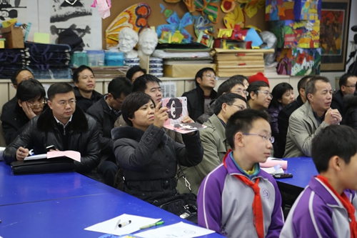 接着,领导、专家分别观摩了我校聂焱老师的美术课《文字传达》与张家龙老师的音乐课《鹅》。《文字传达》一课在尊重学生生活认知与体验的基础上,通过线条与文字,图形与文字,艺术与文字,实现美术与语文的“以画入字,以字入画”的整合;《鹅》一课是基于学科间的整合,引导学生感受美、发现美。整合的途径:其一,音乐聆听与古诗鉴赏;其二,音乐要素与古诗吟诵;其三,音乐情境与文学想象。两节课尊重了学生学习需求,并努力寻找学科间的交叉点,体现了我校“1+X课程”的整合理念,赢得了领导、专家的高度肯定。