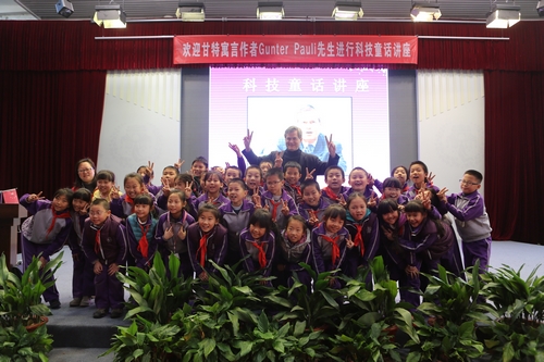 2013年12月17日,我校请来了著名的甘特寓言作者甘特·鮑利 (Gunter Pauli)来我校进行甘特寓言童话讲座。我校三、四年级的同学参加了此次讲座,同时还邀请了“科技手拉手学校”的师生10余人参与了此次活动。