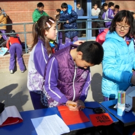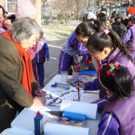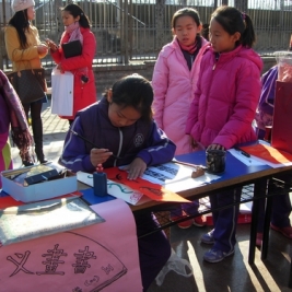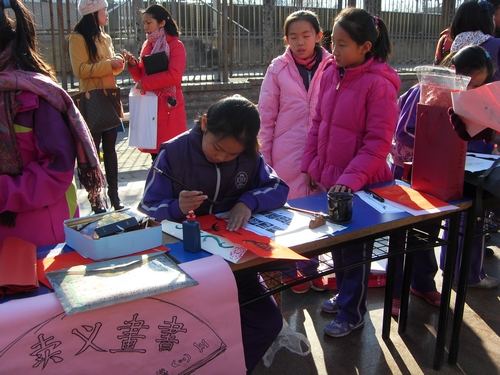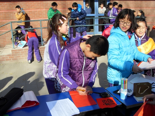 2013年12月18日下午,我校每年“迎新年 进社区”书画会,在清华园老干部活动中心前坪隆重举行。这次活动是由学校教育教学研究中心牵头,美术组以及五年级全体师生参与的大型活动。