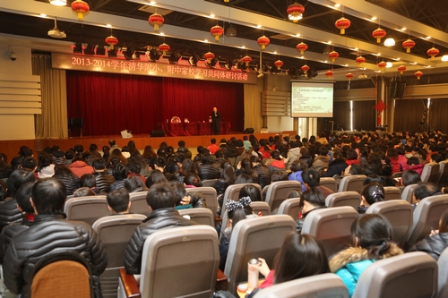 2013年12月21日下午,我校在清华附中报告厅举行了家校学习共同体研讨活动,邀请到了长期致力于基础教育与家庭教育理论研究与探索的张文质先生来为家长老师们演讲。我校全体教师、高年段全体家长包括附中创新班的家长近千人参加了此次活动。这次活动是我校继上周,推行国际赏识教育的曾桂安先生演讲后的,又一场精神盛宴。