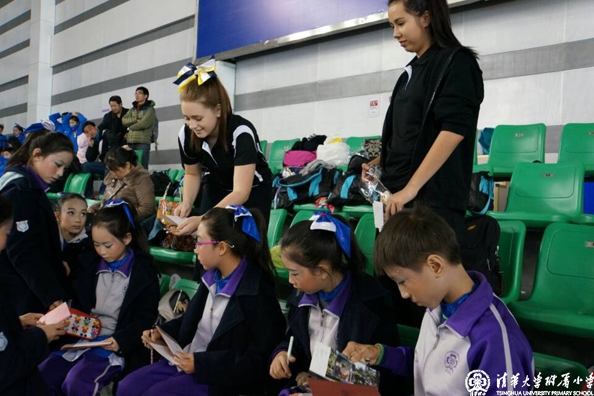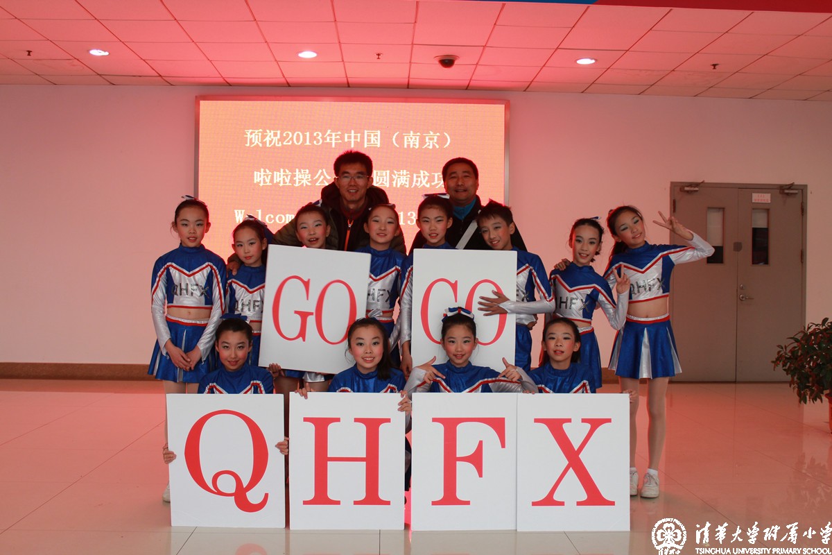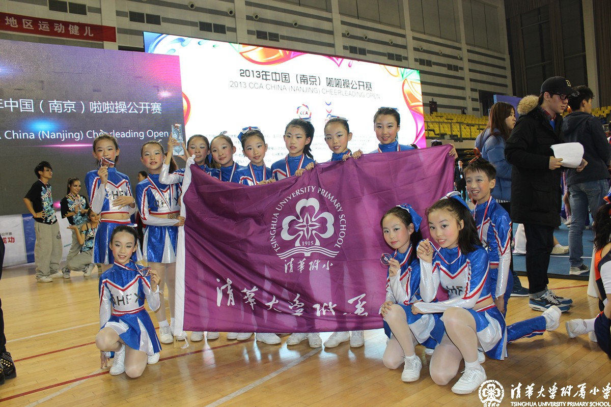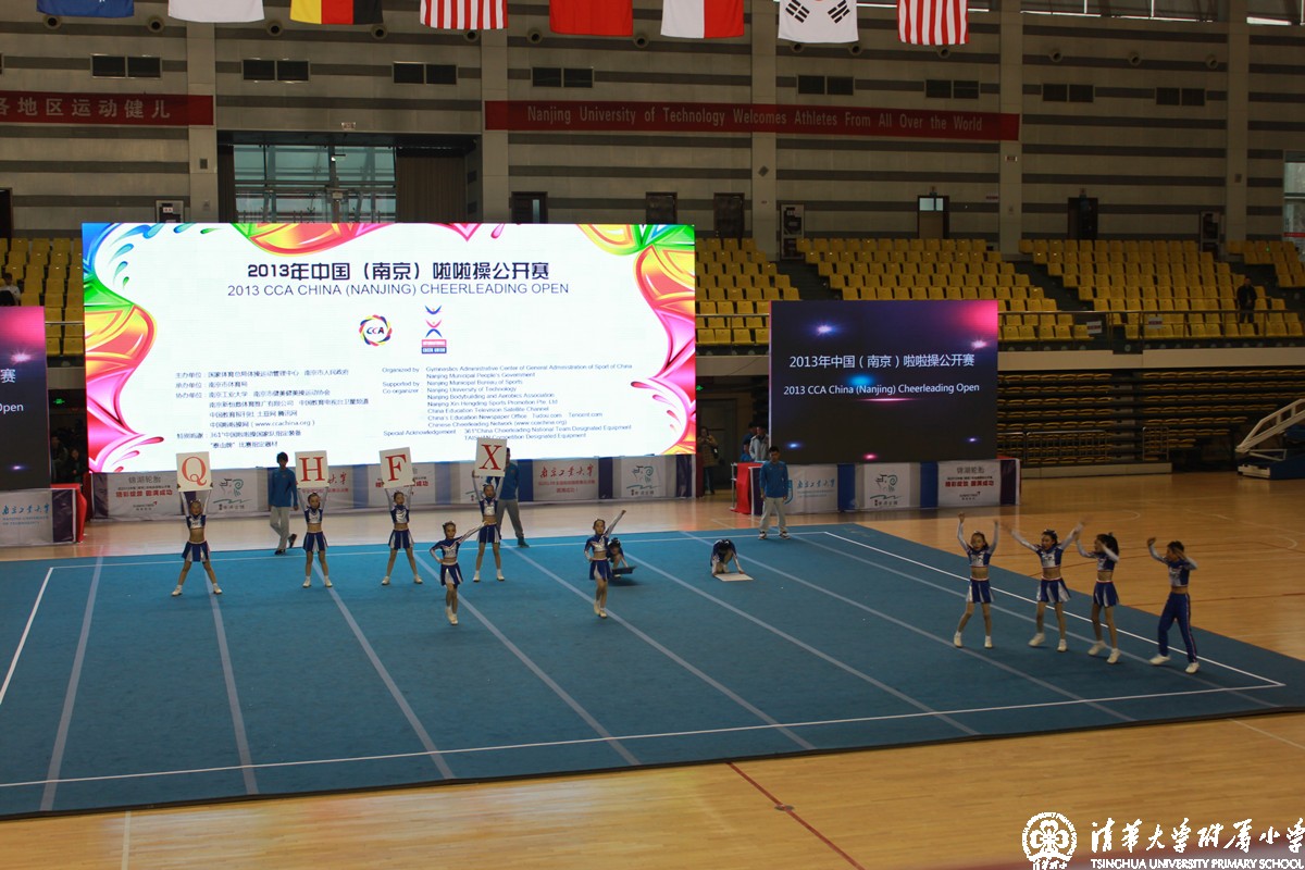 此次比赛我校啦啦操队是授国家体育总局体操运动管理中心,啦啦操竞赛委员会选派,代表中国参赛的小学代表队三支队伍中的一支。这也是我校健美操社团第一次参加这样高水平的国际赛事。最终我校获得了小学组技巧啦啦操季军的优异成绩,并取得代表中国参加2014年世界啦啦操锦标赛的资格。比赛中教练精心设计的动作,富有内涵的编排,被队员们以最佳的状态精彩演绎,扎实的基本功,赢得了裁判与观众的阵阵掌声。他们在赛场上尽情舞动,诠释了团队集体协作的力量和朝气蓬勃的精神风貌。在场下我们的同学们充分体现了国际视野,与各国的运动员进行交流和学习,而且他们还把学校的明星片送给了各国运动员们。
