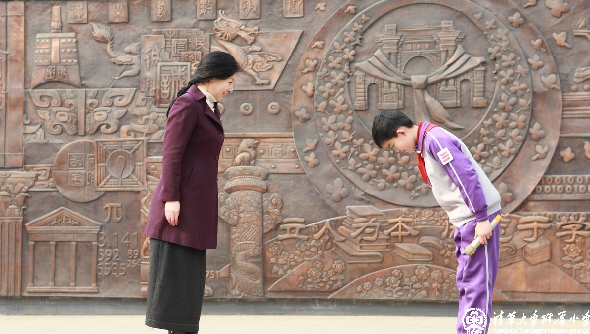 鞠躬礼是对学生进行传统教育的重要载体。鞠躬礼是西方及亚洲国家传统的、普遍使用的一种礼节。党的18大提出,要在全社会弘扬“友善”的社会主义核心价值观,清华附小纲领中提出要构建“彼此热爱、彼此尊重”的师生关系,鞠躬礼体现了人与人之间的友善。学生对老师鞠躬,不仅表达了学生对老师的尊重,也是对知识的尊重。老师对学生的鞠躬,不仅体现了师生之间的平等、尊重,更是聪慧和高尚的人应具有的品格。