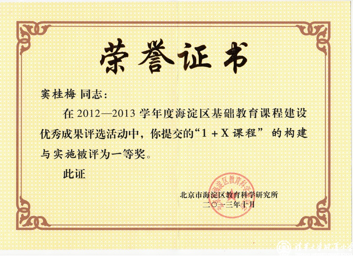我校窦桂梅校长获海淀区基础课程建设一等奖