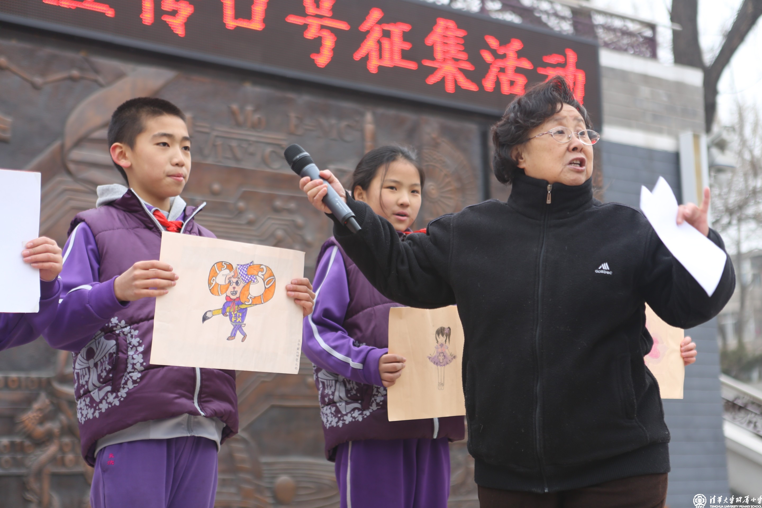 毕老师:听了你们的介绍,我相信,我们全校的同学和老师,都会设计出独特的,带有我们清华附小印记的百年校庆校徽、吉祥物和宣传口号。