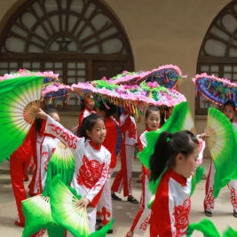 在参观革命圣地枣园、杨家岭和宝塔山时,延安职院附小和创新实验小学的“小小宣传员”不但为清华附小的老师们生动细致地进行了讲解,还以独唱、快板书、诗朗诵、陕北大秧歌及安塞腰鼓等具有地方特色的表演展示了他们独特的精神风貌,延安精神已经深深扎根于他们的学习和生活中。清华附小的老师们感叹于延安职院附小和创新实验小学多年来在教育中倡导、弘扬与实践延安精神的传统,一次又一次地为小小宣传员们响起热烈的掌声。