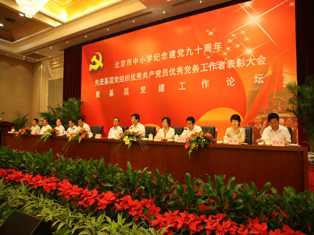 本次大会是为纪念中国共产党成立90周年,进一步深入推进创先争优活动,大力宣传基层党组织、共产党员和党务工作者的先进事迹,激励全市中小学校党组织和广大党员、群众自觉投身于首都教育事业工作而开展的。会上北京市委赵凤桐等同志出席会议并颁奖。共表彰各级各类中小学校党委、党总支、党支部等先进集体100个,优秀共产党员100名,优秀党务工作者100名。