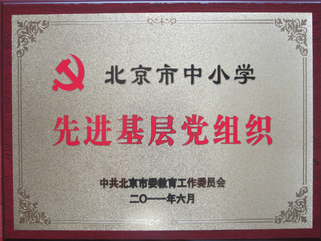 2011年6月16日上午,在北京会议中心举行了北京市中小学纪念建党九十周年先进基层党组织优秀共产党员优秀党务工作者表彰大会,我校党总支荣获“北京市中小学先进基层党组织”称号。