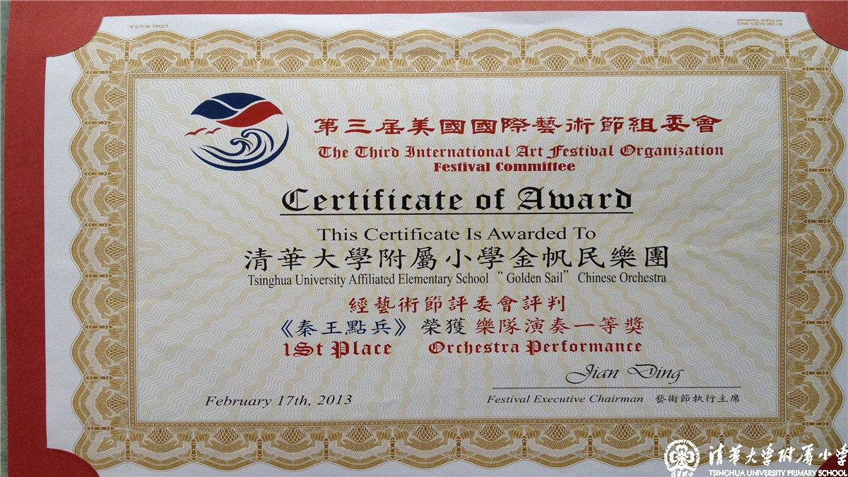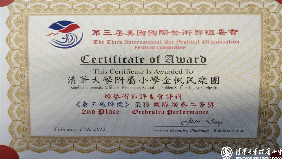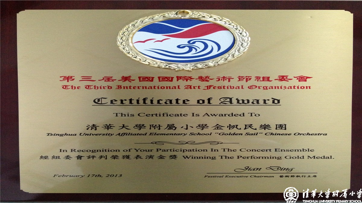 - 我校金帆民乐团荣获第三届美国国际艺术节文化小使者