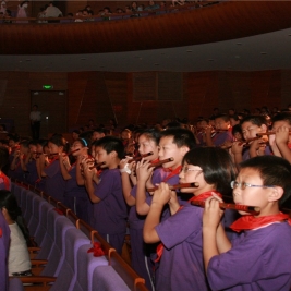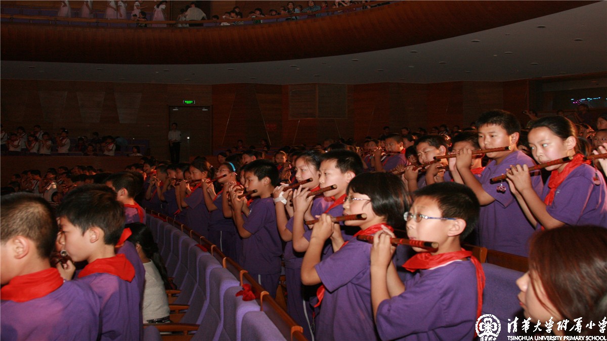 在2012年六一儿童节我校在新清华学堂隆重举办“水木童心”庆六一活动,我校金帆民乐团为观众献上精彩的演出。