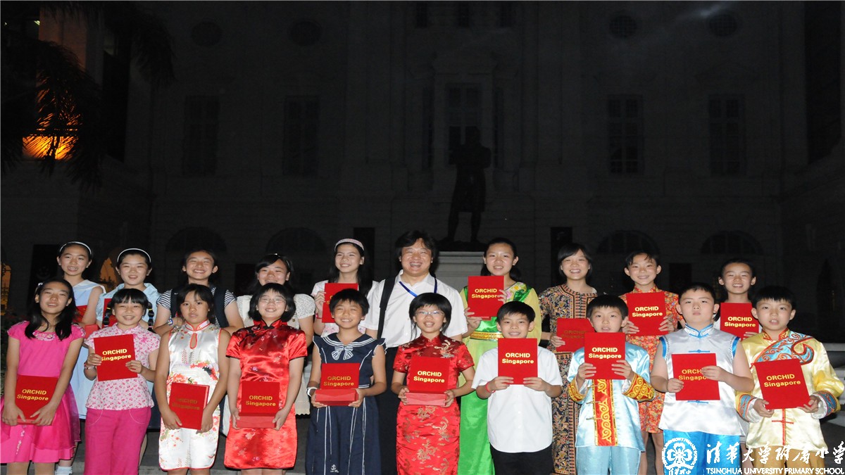 图为我校金帆民乐团部分团员利用暑假期间赴新加坡参加“胡姬花”杯新加坡音乐舞蹈大赛活动