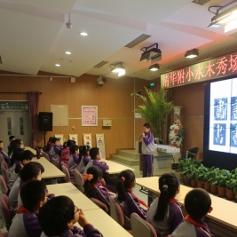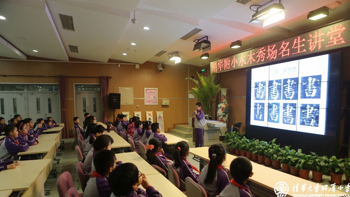 清华附小水木秀场名生讲堂开讲啦!六(5)班的邹睿石同学作为第一期主讲人,重点介绍了自己“墨韵飘香”的书法之路。