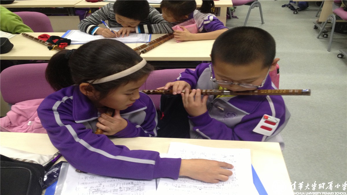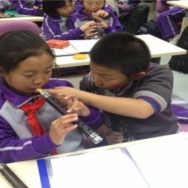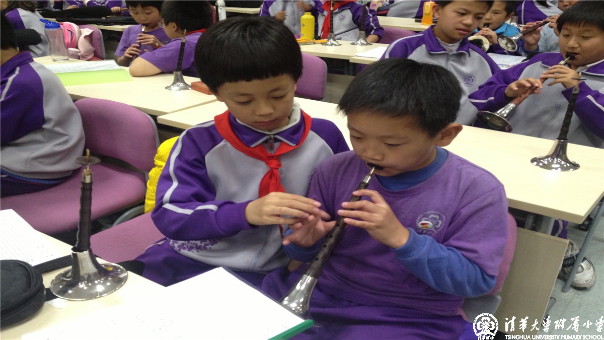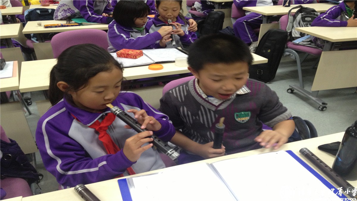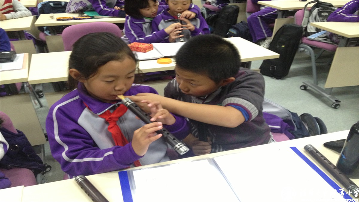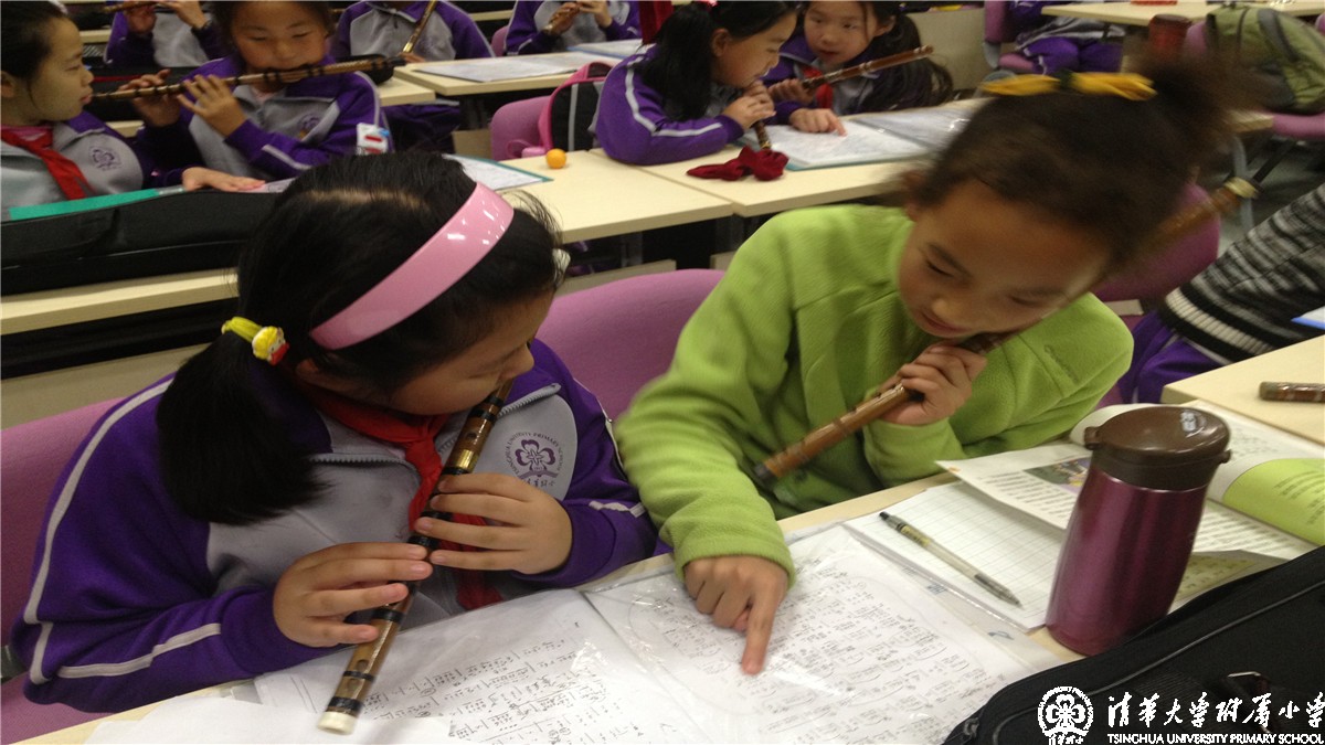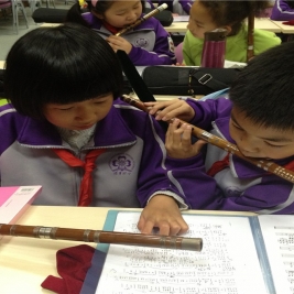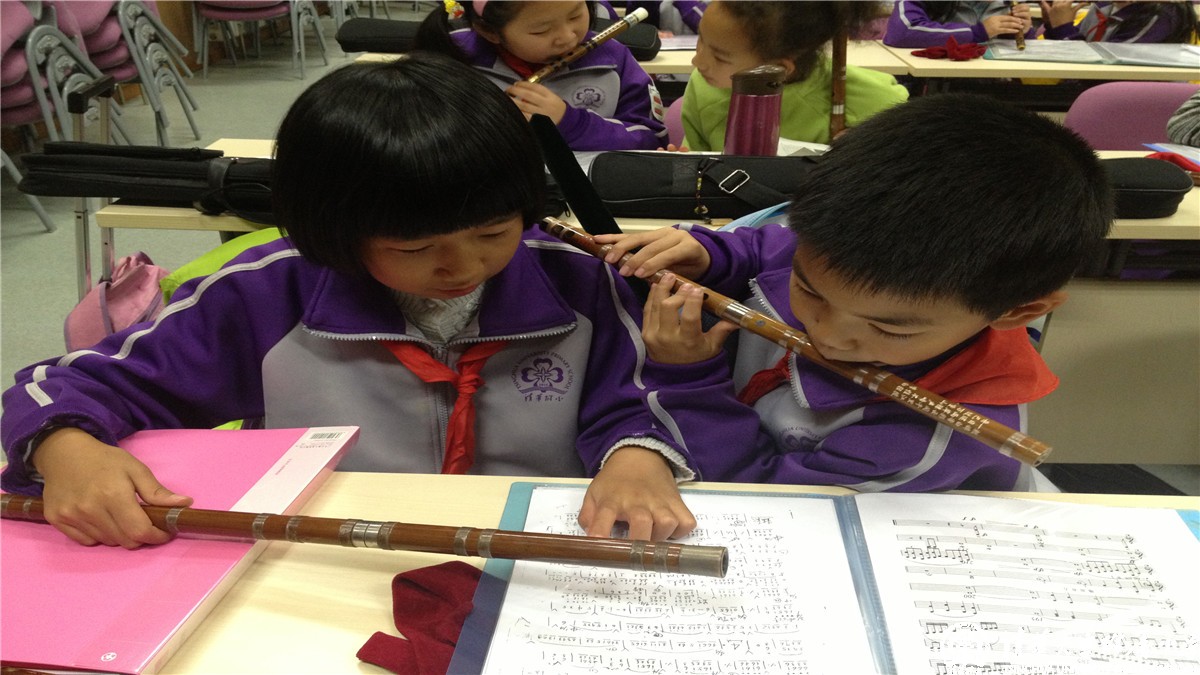 “师带徒”活动是我校金帆民乐团自建团以来积极倡导开展的重要活动,此项活动在日常排练中起到了积极的作用,很多刚参加乐团的小团员们感到受益匪浅。图为“小老师”正在帮助“小徒弟”进行视奏新谱的练习。
