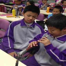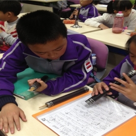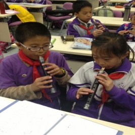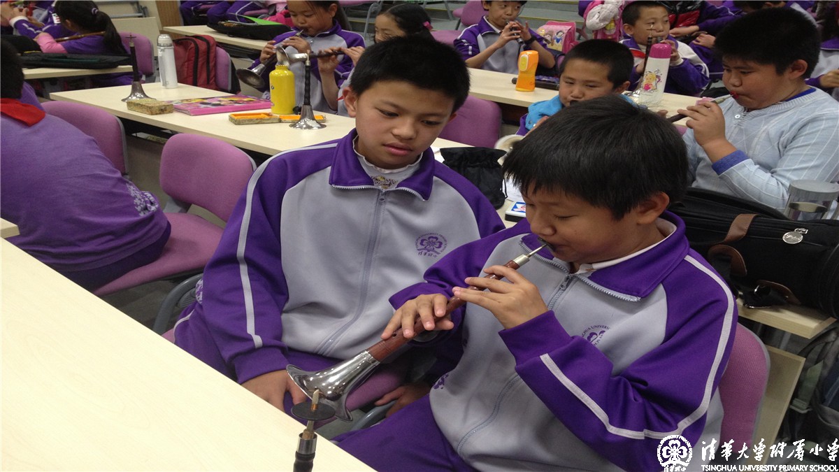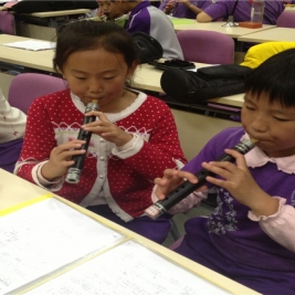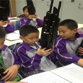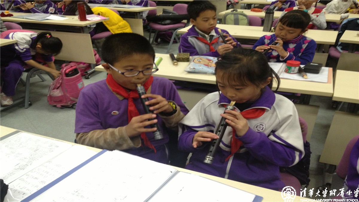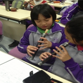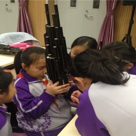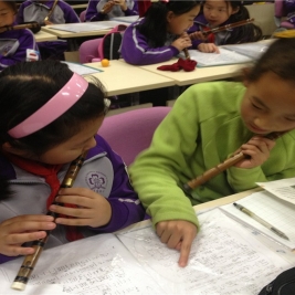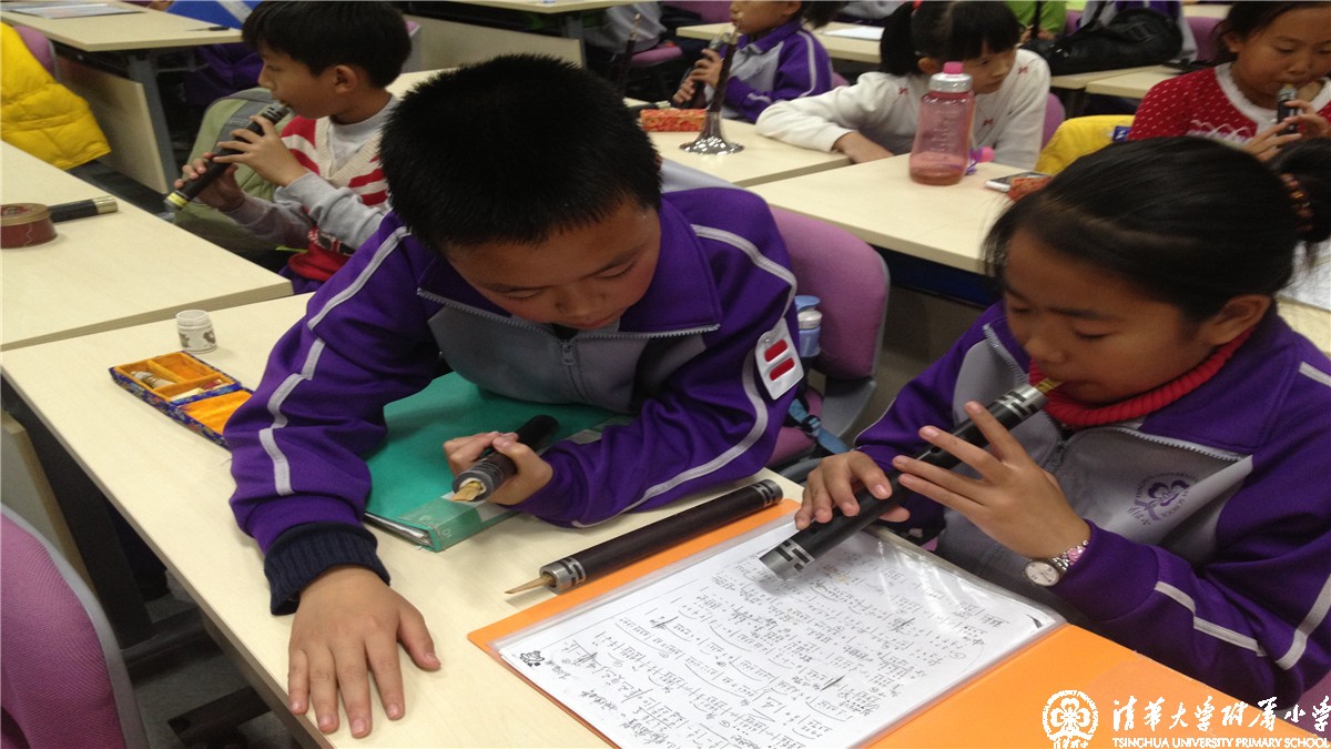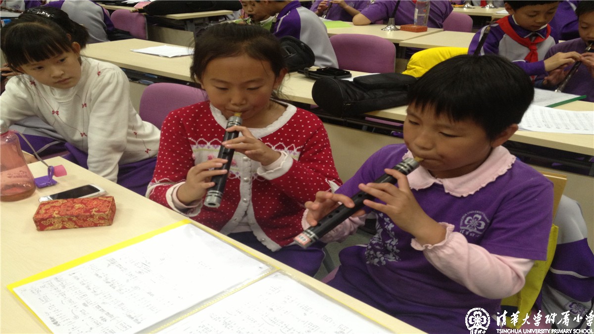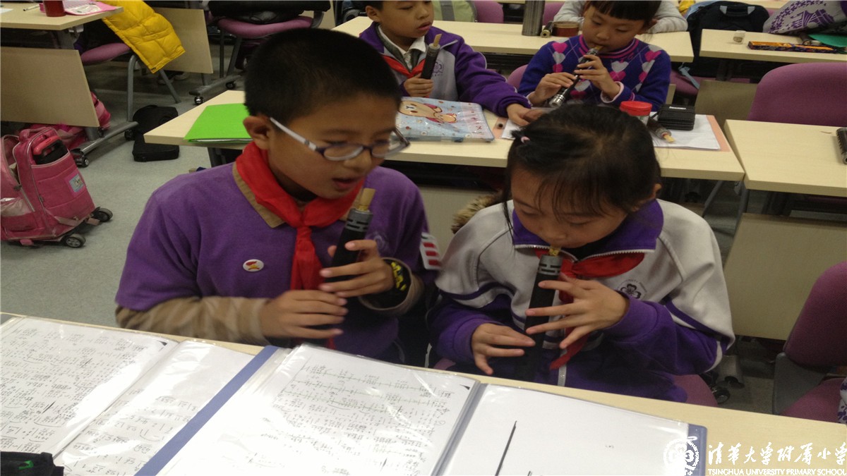 “师带徒”活动是我校金帆民乐团自建团以来积极倡导开展的重要活动,此项活动在日常排练中起到了积极的作用,很多刚参加乐团的小团员们感到受益匪浅。图为“小老师”正在帮助“小徒弟”进行视奏新谱的练习。