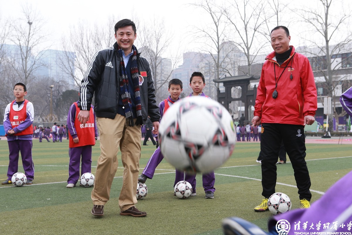 新华网:2014年2月28日上午,清华附小举办“1+X课程”体育课程展示活动。清华附小始终秉承“为聪慧与高尚的人生奠基”的办学理念,以“健康、阳光、乐学”为学生的培养目标。清华附小全体师生,奥运冠军肖钦、王海滨、清华人自己培养的世界大学生运动会百米冠军胡凯,教育部、北京市教委、海淀区教委主管体育工作的相关领导都出席了本次活动。