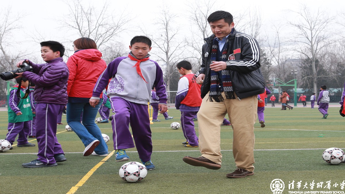 秉承“为聪慧与高尚的人生奠基”的办学理念,为实现“健康、阳光、乐学”的学生培养目标,2014年2月28日上午,清华附小举办“1+X课程”主题课程之体育课程展示活动。奥运冠军肖钦、王海滨、胡凯,教育部、北京市教委、海淀区教委主管体育工作的相关领导出席了活动,并与学生一起参与到体育大课间锻炼中去。