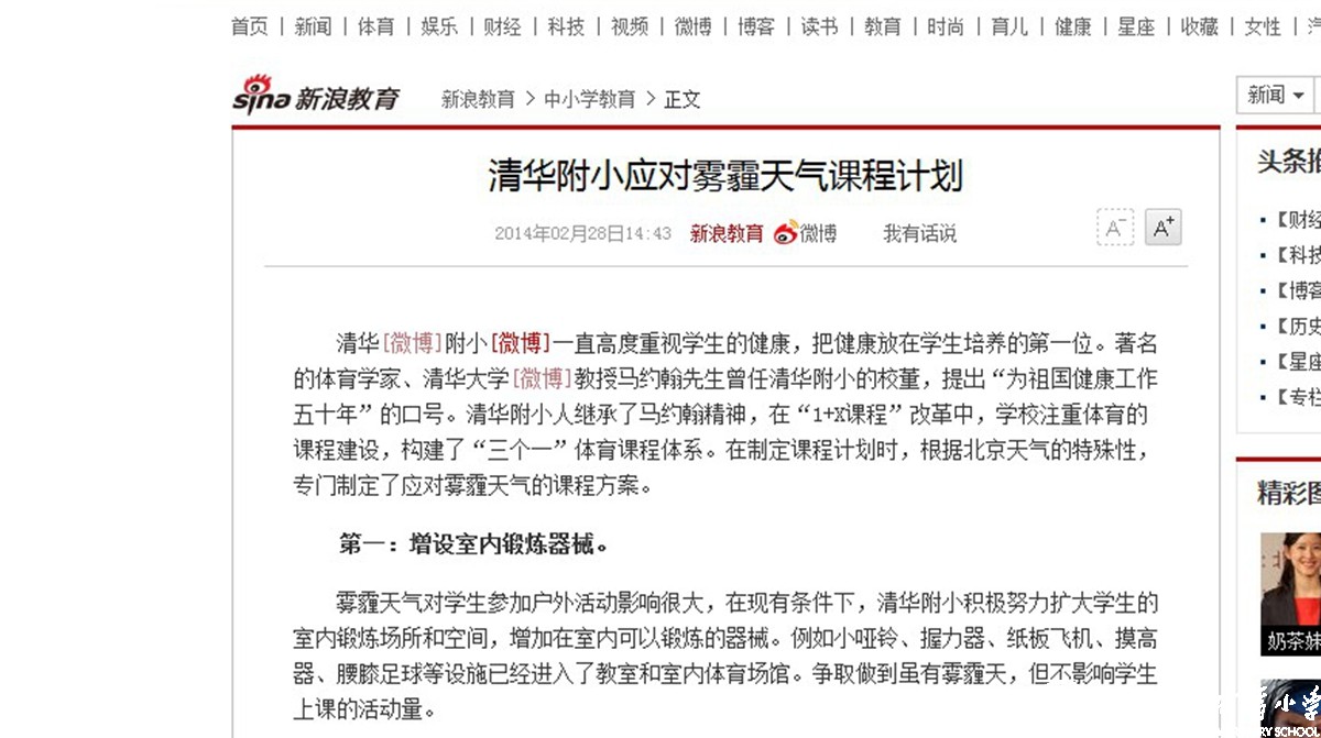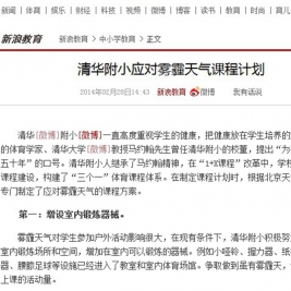 新浪网:清华附小在制定课程计划时,根据北京天气的特殊性,专门制定了应对雾霾天气的课程方案。