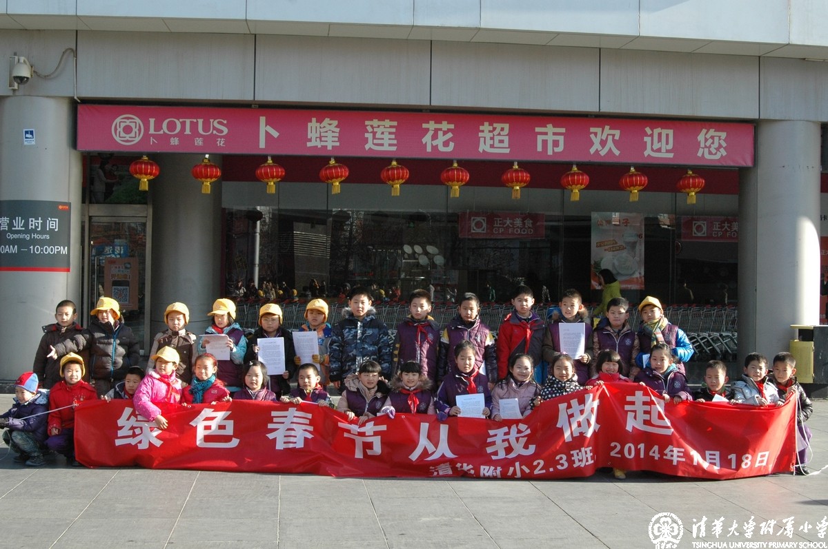 在假期中一项家庭志愿公益服务活动已经成为清华附小的传统。我校各班级的学生,在家长的带领下参加了各种各样的公益活动:为社区居民送春联送祝福;去孤儿院看望小朋友;去敬老院陪爷爷奶奶过春节;去特殊学校探望儿童;也有为贫困地区组织募捐活动……