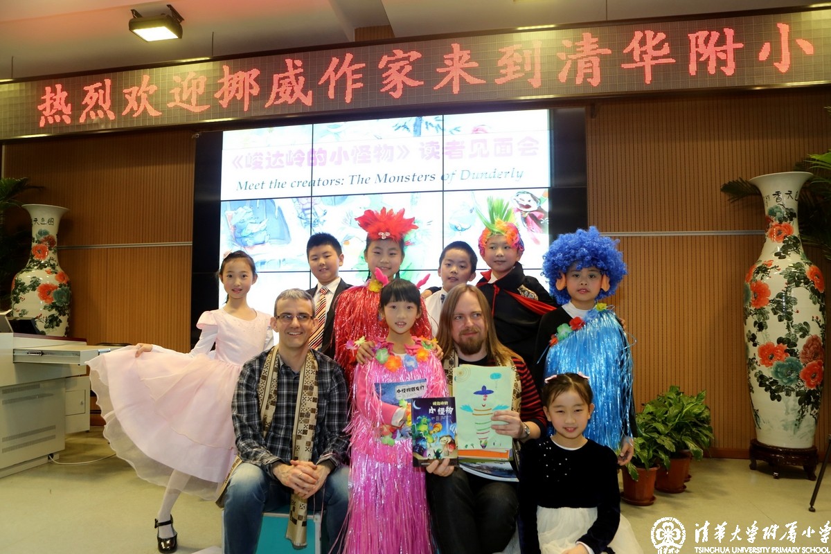 2014年3月21日,挪威作家恩德仁•伦德•爱瑞克及插画家 恩德仁•思甘德夫来到美丽的清华附小。参加此次读者见面会的还有挪威大使馆文化专员邓咏欣女士和中国儿童文学研究中心秘书长王蕾女士、三年四班的全体学生以及家长。