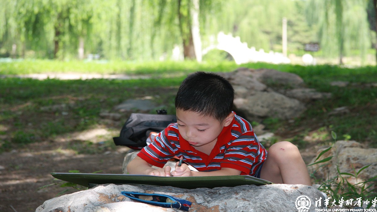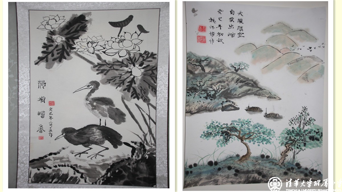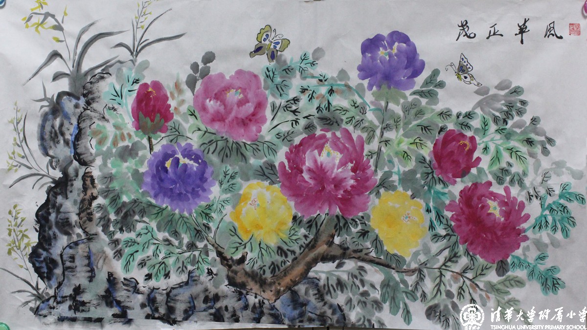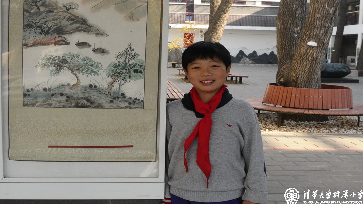 在清华附小的“1+X课程”中,魏亦博接触到了书法和国画,一下子就被国画的那种厚重韵味深深的吸引了。他开始研究怎样才能用柔软的毛笔画出如此美丽的图画?他在学校书法课画,在课后班里画,在家中画……2013年他代表附小参加 “书法报第九届全国少儿书画现场大赛”获得北京分赛区一等奖,全国总决赛银奖。当校长给他颁奖时,当他光荣当上升旗手时,他说他一定还要用柔软的毛笔画出更多神奇的作品。