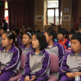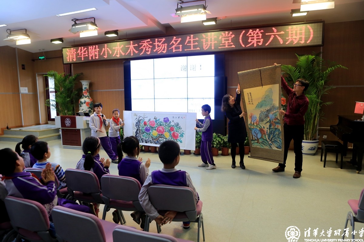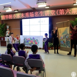 同学们被魏亦博的精彩讲座深深地吸引了。“你从什么时候开始画画?”、“你最喜欢画什么画?”、“你为什么喜欢国画?”讲座中一直气氛热烈,同学们问题一个接着一个。最后,魏亦博同学还现场展示了近期为附小百年校庆书画展所创作的两幅国画作品。