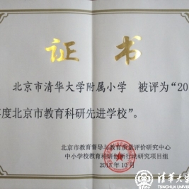 2014年3月,清华附小经过海淀区层层筛选,荣获“2013年度北京市教育科研先进学校”的称号。全市113所中小学中,35所学校获得此项殊荣。