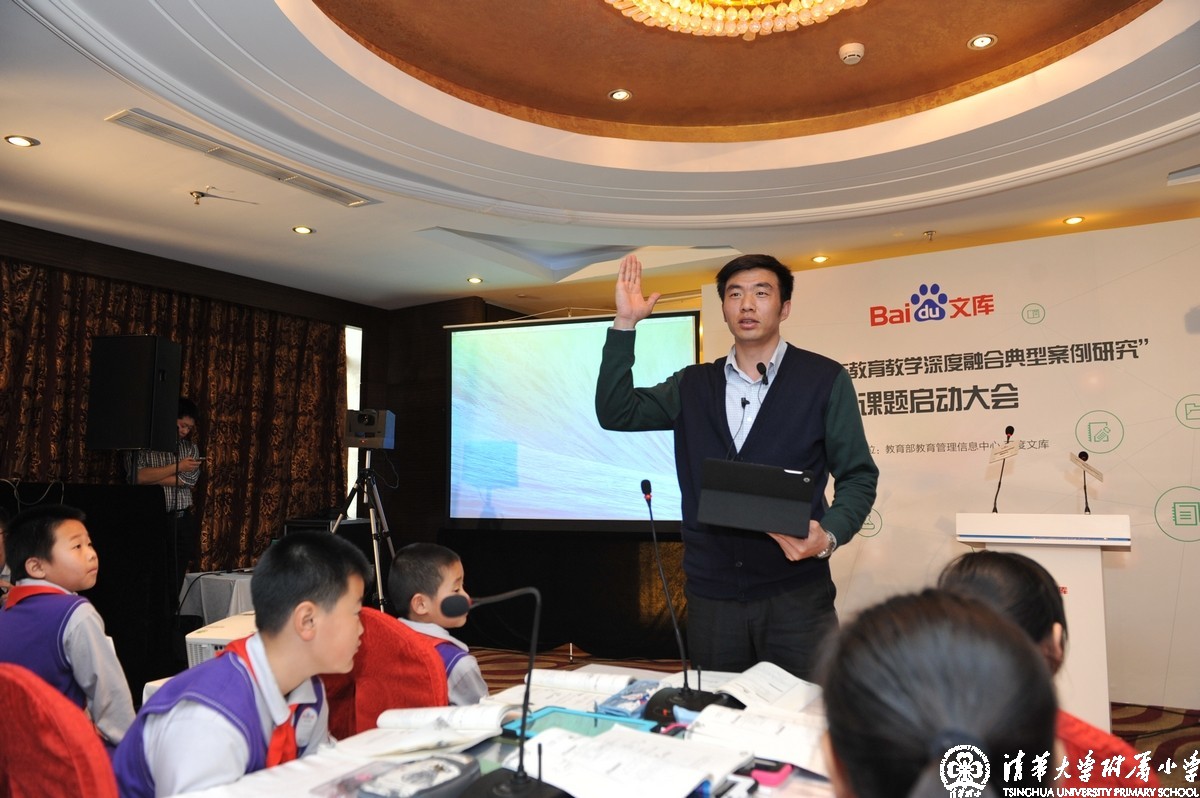 我校王建刚老师以及四年级五班的学生在大会上展示了典型课例《四边形分类》。老师和同学们采用ipad平板电脑变革了学习方式,实现了课堂上学生的自主探究,师生的即时互动。这堂课得到了北京市西城区网络教研室滕秋莉的高度评价,认为有效利用了网络技术和资源,起到了促进与示范引领作用。课上,同学们大胆的质疑,踊跃的发言,积极的学习状态也获得了与会专家的赞赏。