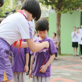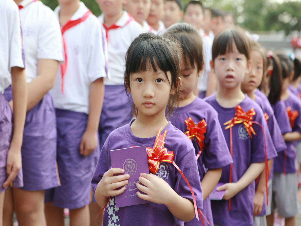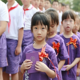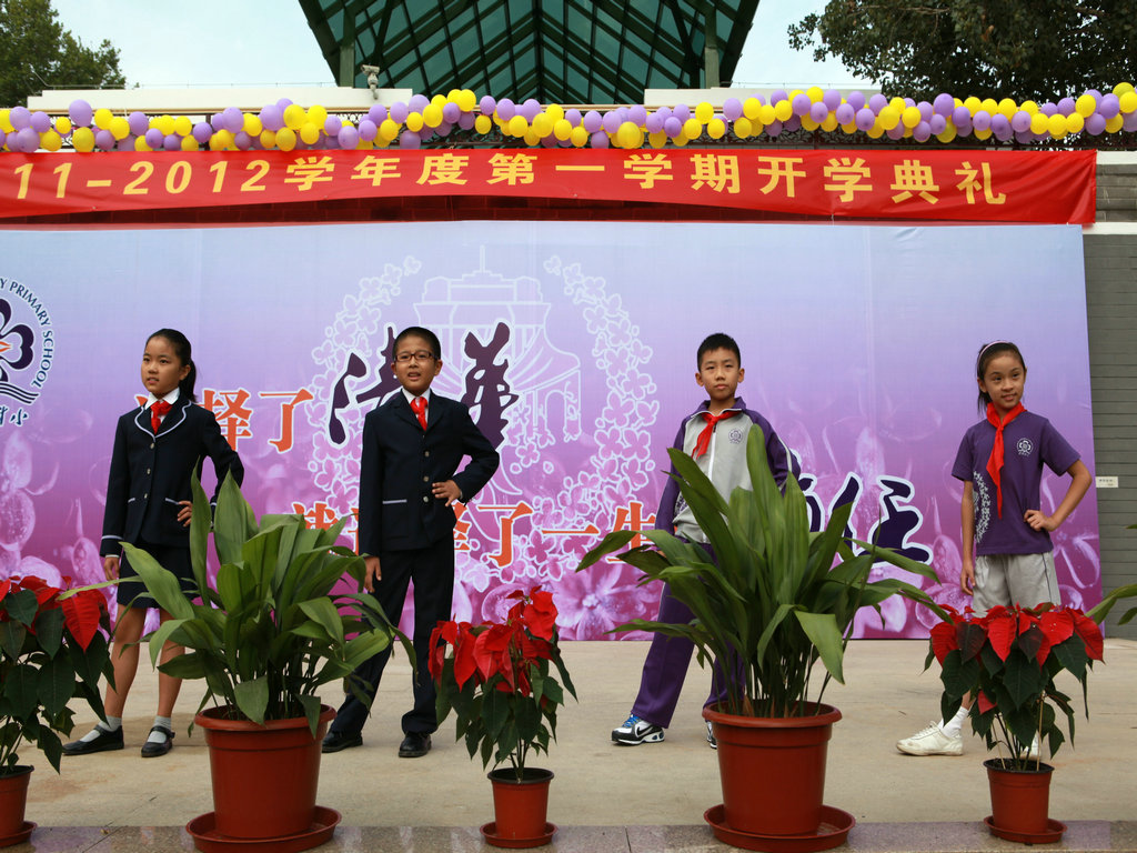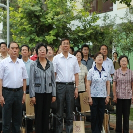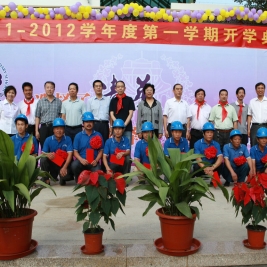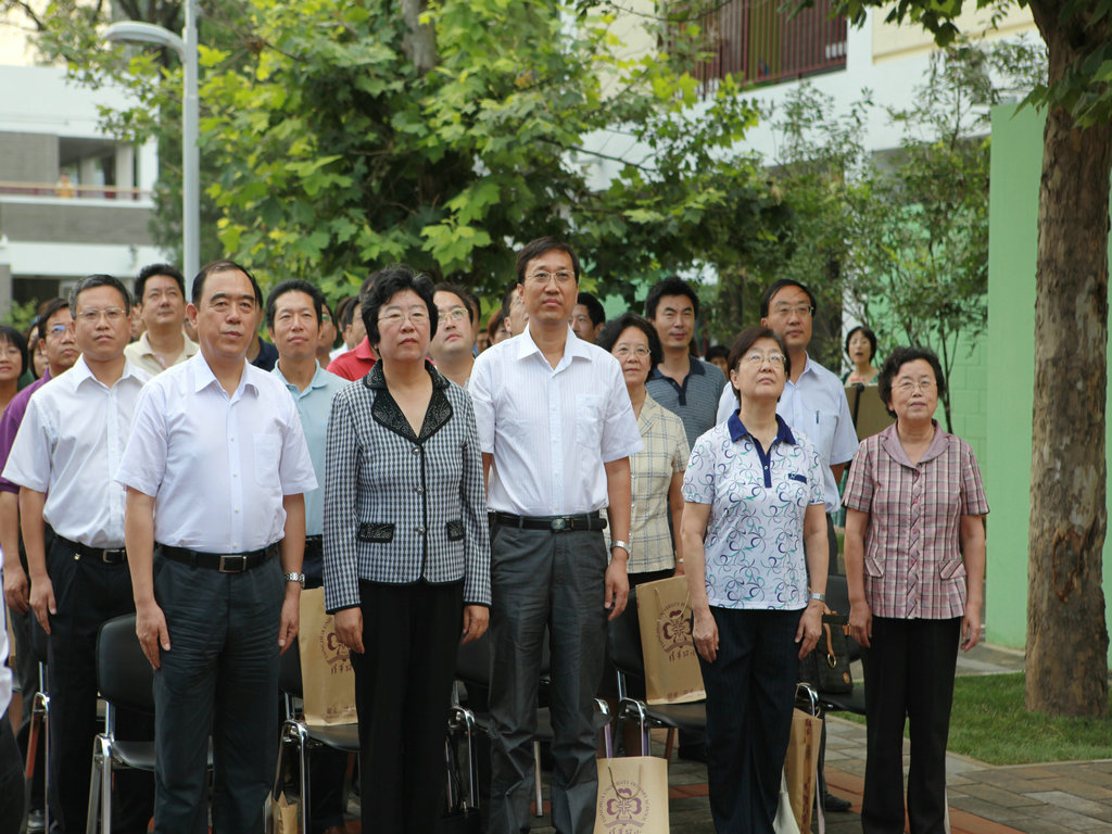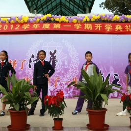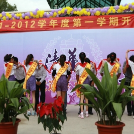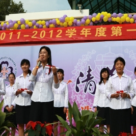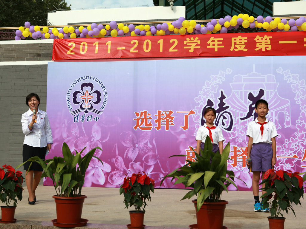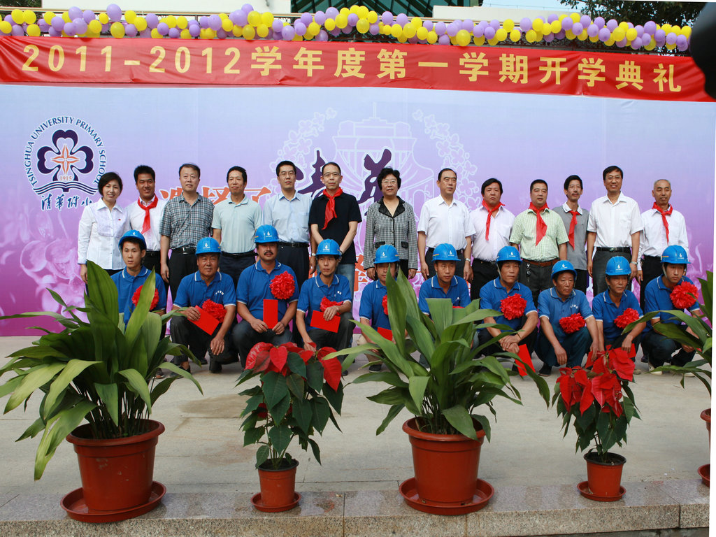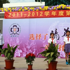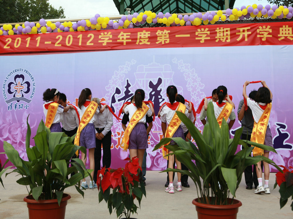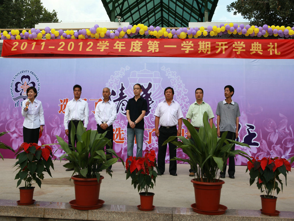 选择了清华,就选择了一生的责任! 9月1日上午八点,清华附小2011——2012学年度第一学期开学典礼在附小校园隆重举行。焕然一新的校园里鲜花簇簇、彩旗飘扬,阳光般的笑脸,熟悉的问候,清华附小又迎来了新的学期!清华大学党委副书记韩景阳、清华大学校长办公室主任王进展、区人大主任周来升、区教工委书记张卫光、北京六建集团总经理于国亮以及大学基建处、赛尔、紫光集团、继续教育学院、基金会、清华幼儿园、美院等领导和全体一年级学生家长参加了开学典礼。 三个月的时间,学校的环境发生了翻天覆地的变化,典礼上学生们纷纷举手发言,说出自己所看到的校园变化,书法教师现场挥笔书写“新校园、新教师、新学生、新校园、新学期、新教育”横幅,全校师生齐声读出。 在庄重的升旗仪式后,全校师生进行了郑重的宣誓仪式,全体学生,手放胸口,庄严宣誓:“我是清华少年,要努力成为健康、阳光、乐学,拥有中国灵魂,国际视野的现代人。”窦校长带领全体教师上台,庄严宣誓:“我是清华人,努力用敬业、博爱、儒雅成就每一个学生,把每一个学生的成长当作教师的最高荣誉。” 随后先由窦校长向全体与会人员介绍了暑假期间为附小抗震加固工程做出突出贡献的个人与单位代表,并为他们一一戴上鲜艳的红领巾,表达附小全体师生的感谢之情!此外,典礼上还对附小加固工程中表现突出的十位工人进行了表彰,附小的十名学生为他们系上大红花,并由出席典礼的领导嘉宾为工人们发放红包,感谢他们90天日以继夜的辛勤工作。 典礼上,还举行了聘任仪式,我校聘请清华大学法学院院长王振民为清华附小的法制副校长。 本次开学典礼上还有几项特殊的环节,其中之一是由窦校长亲手将写有各班学生名字的名单,分别交给一年级的各班的班主任老师,名单既是学校对老师们的嘱托,也是老师们义不容辞的责任! 最后,由我校六年级学生为一年级学生佩戴小红花,并送出《启程护照》。《启程护照》是我校首次启动的一项教育活动,是一本要求学生在开学后的一周内,分别完成收集到老师和同学的签名、填写学校建筑的名称等任务的小册子,完成任务的学生分别在护照上盖上“珍惜友谊章”、“健康成长章”、“附小主人章” 此次护照盖章有效地促进了同学们主动沟通的意识,同时也能促进学生更快的熟悉校园环境,尽快地适应小学生活。 “选择了清华,就选择了一生的责任。”愿我们一起努力,培养我们的学生低头奋斗的智慧和抬头看天的情怀! 窦校长讲话 参会领导嘉宾 学生宣誓 为附小抗震加固工程做出突出贡献的个人与单位代表 为附小抗震加固工程做出突出贡献的个人与单位代表戴上红领巾 表彰在附小加固工程中表现突出的十位工人 手捧名单的一年级班主任们 六年级学生为一年级学生佩戴小红花 每一位一年级学生都拿到了自己的《启程护照》 新校服展示