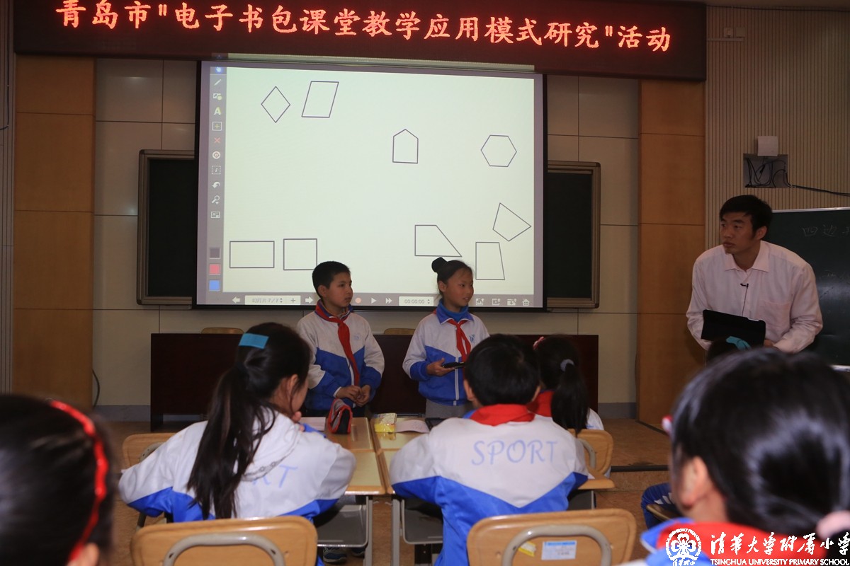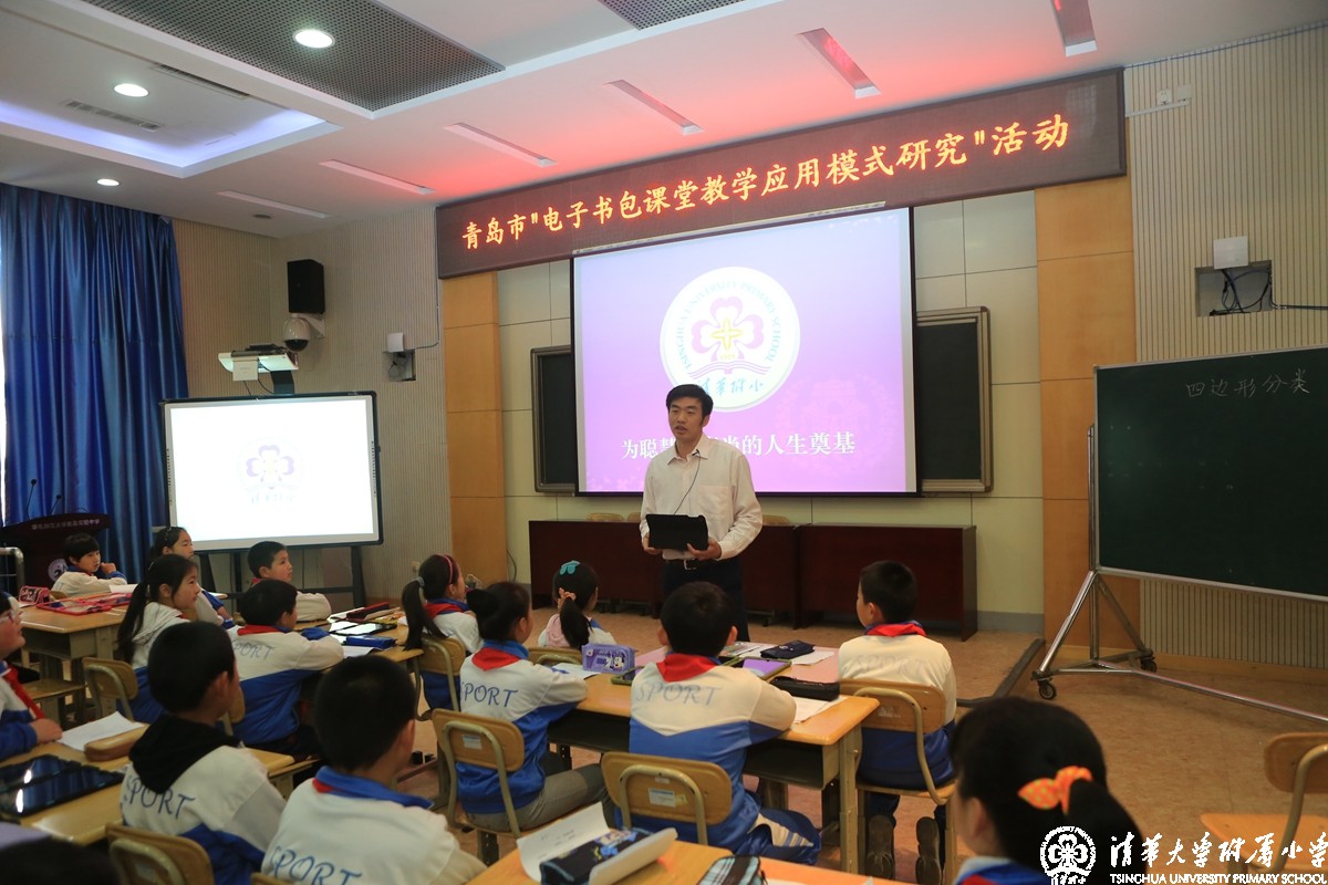 2014年4月11日,我校王建刚老师受教育部邀请参加在青岛市举办的“电子书包课堂教学应用模式研究”活动,并作现场展示课《四边形分类》,近200名教育专家与会。
