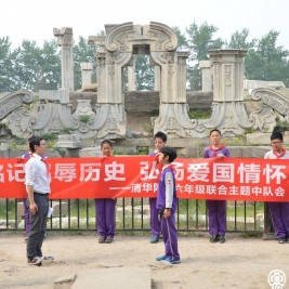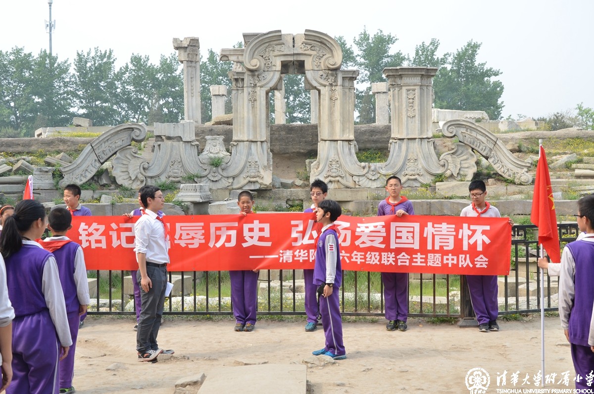 24日下午,一场特殊的联合中队会在六年级井然有序地展开。以“铭记屈辱历史,弘扬爱国情怀”为主题的联合主题中队会在圆明园的遗址前庄严、肃穆地进行着,当联合中队辅导员薛晨老师带领全体六年级师生在队旗前庄重地宣誓,齐声背出梁启超的《少年中国说》,香港培侨小学的师生被深深地震撼了,带队的郑老师表示:“参加了这次活动,我们的孩子仿佛对祖国的历史更加亲近了,对祖国的感情也更加亲近了。”