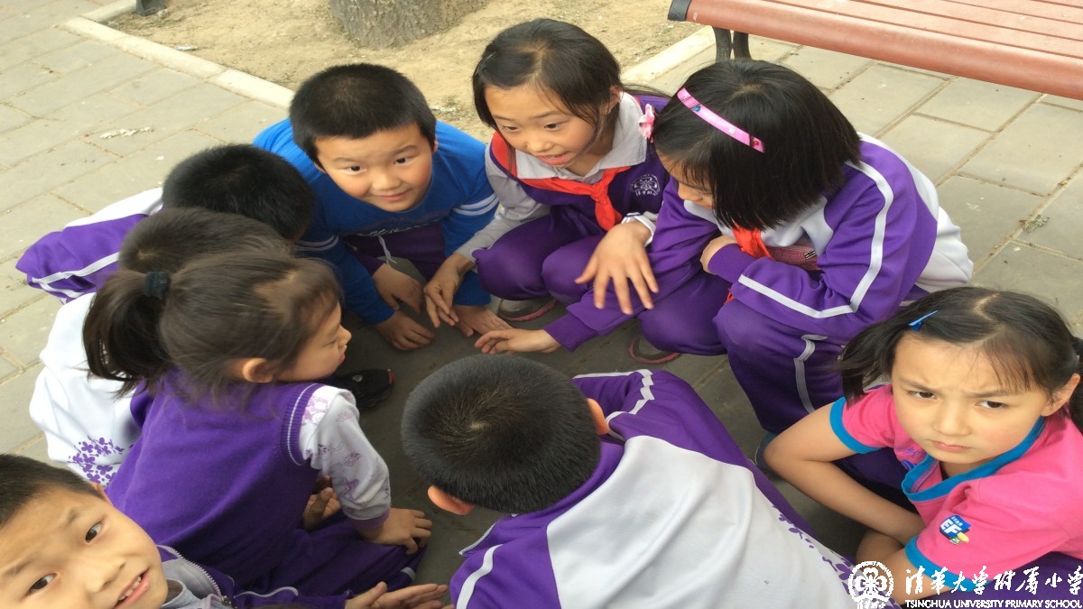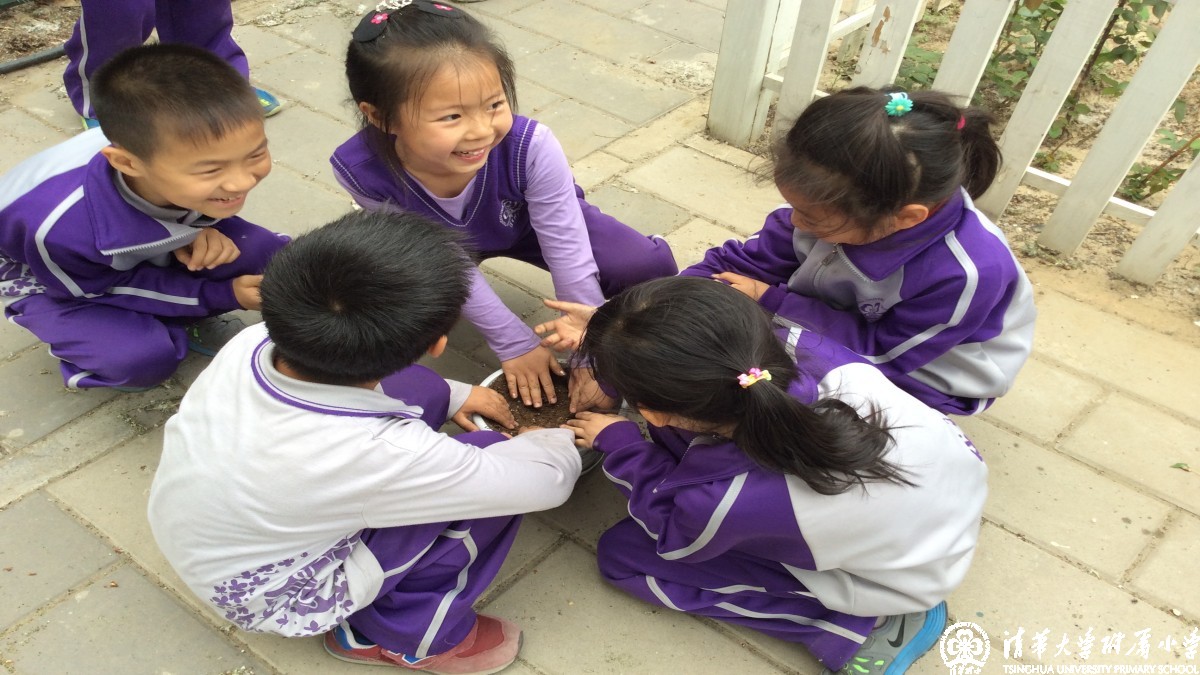 春天是生命开始的季节,四年级的小朋友辅导1年级的小朋友种植凤仙花。快看,每个人的表情都很欢快!