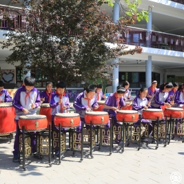 5月5日上午,“丁香绽放”——清华附小第39届艺术节隆重开幕。随着阵阵令人心情振奋的鼓声,合唱团60多名孩子走上主席台,在学校管乐团的伴奏下唱起艺术节的节歌《美丽的丁香在开放》,歌声引起全场1700多名孩子的共鸣齐唱,舞蹈团30多名团员也随着音乐翩翩起舞,书法教师与学生一起书写出“丁香绽放”四个大字,把开幕式推向高潮,也彰显了艺术培养“四个一”的目标。