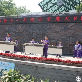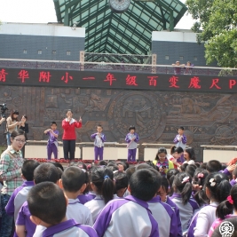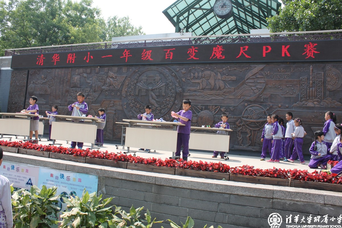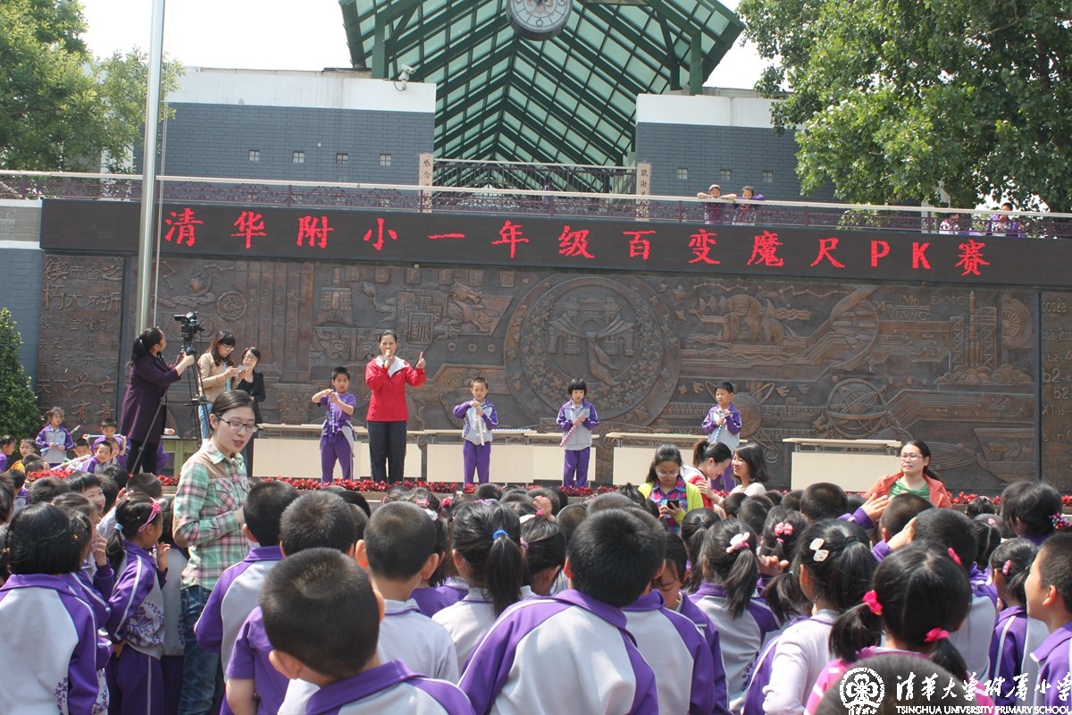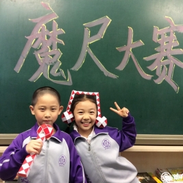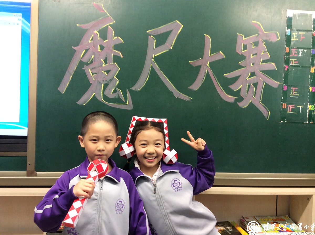 一年级的学生们经过1个多月的学习、训练、选拔,终于在5月6日下午迎来了“百变魔尺PK大赛”。台上的选手跃跃欲试,台下的观众充满期待。