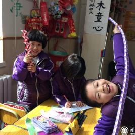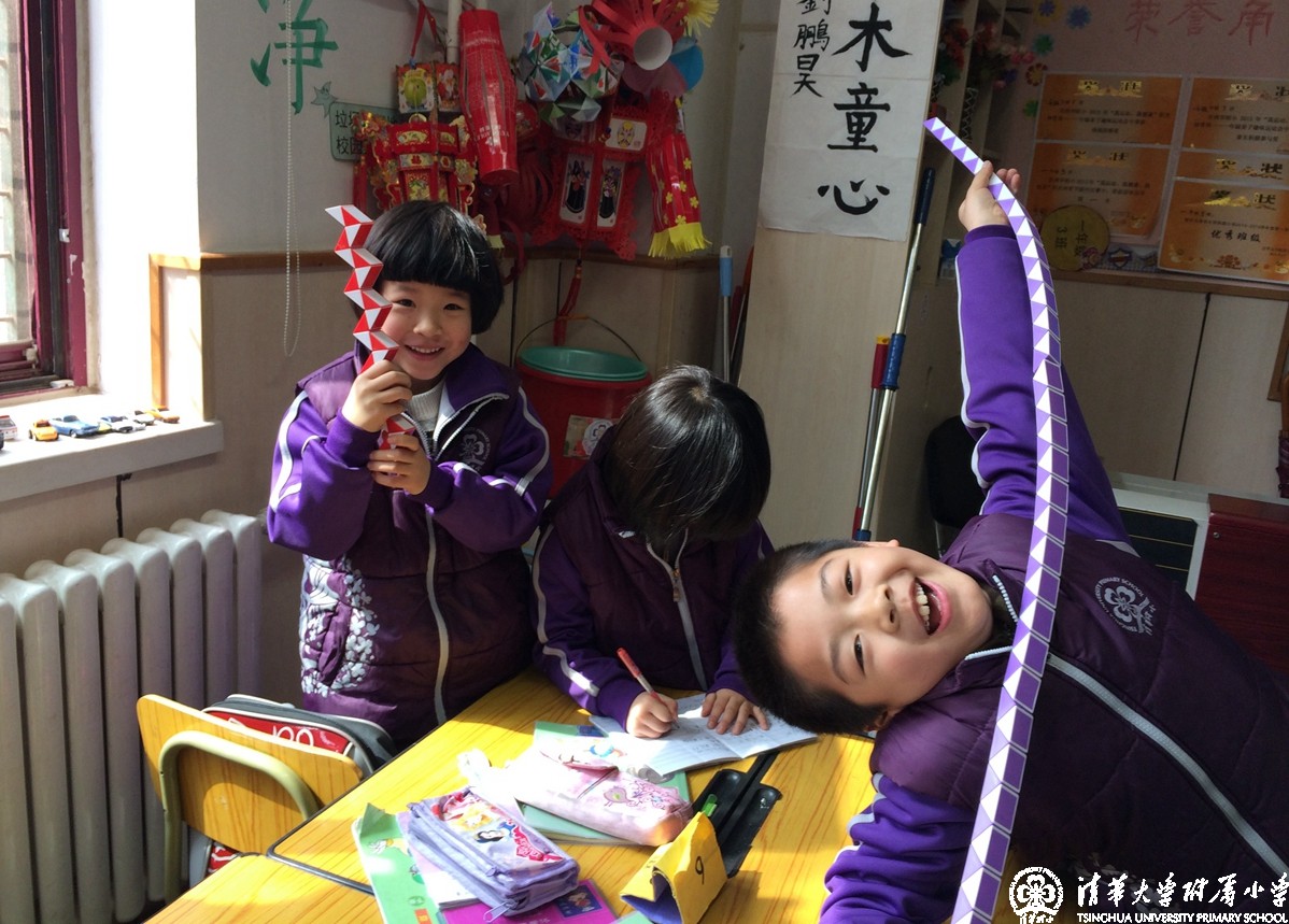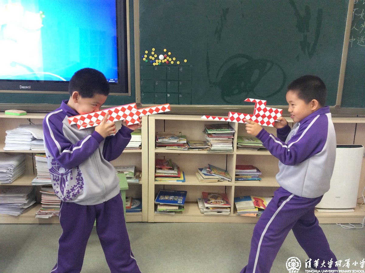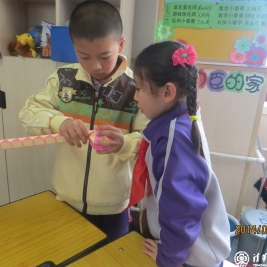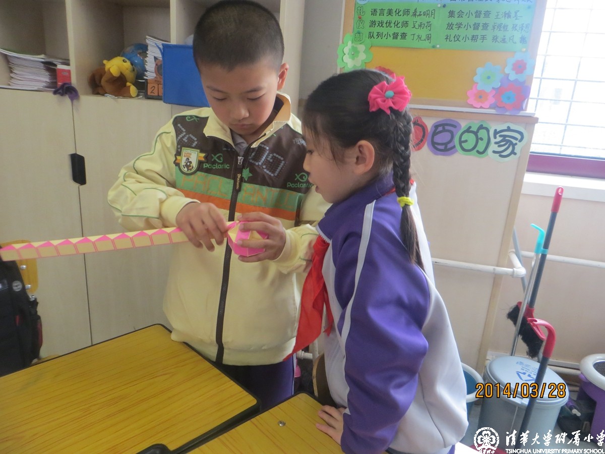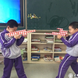 这就是我校正在开展的数学节系列活动之一“我为魔尺狂”,在低年级的课堂上每周都会有这样的一节数学课,老师和孩子们一起手拿魔尺,学习探讨着各种不同的造型。学生们以小组合作的形式进行自由组合,学习着每一种全新的造型,每个小组都展现着自己的创意。