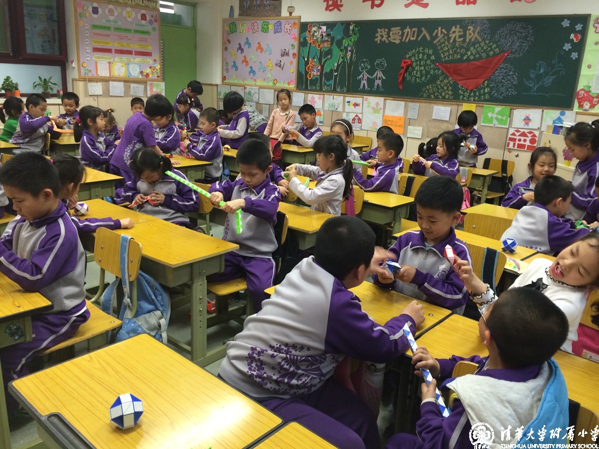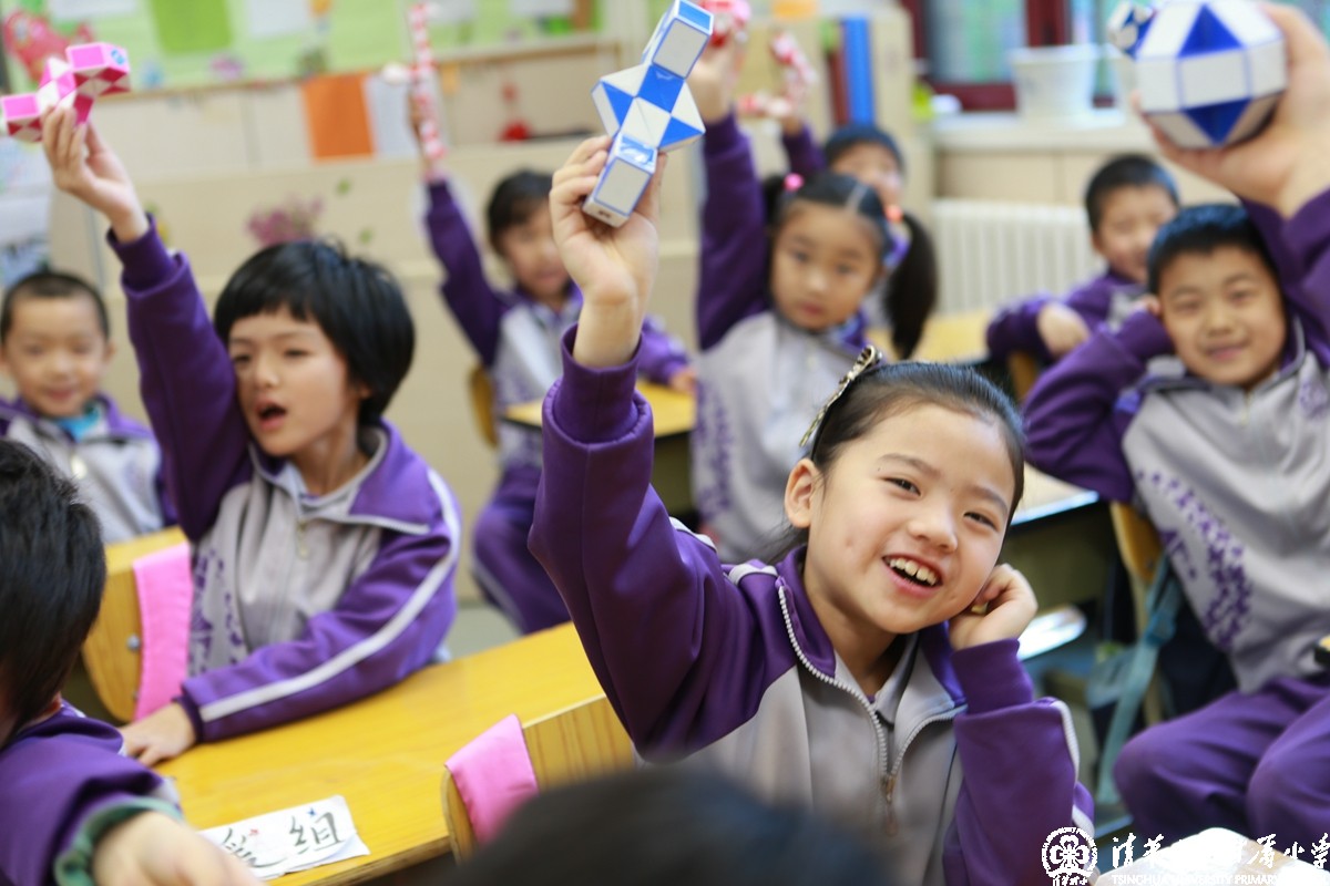 每到课间,学校里就会看到低年级的孩子们手拿魔尺,三五成群地在一起转动着、讨论着。
