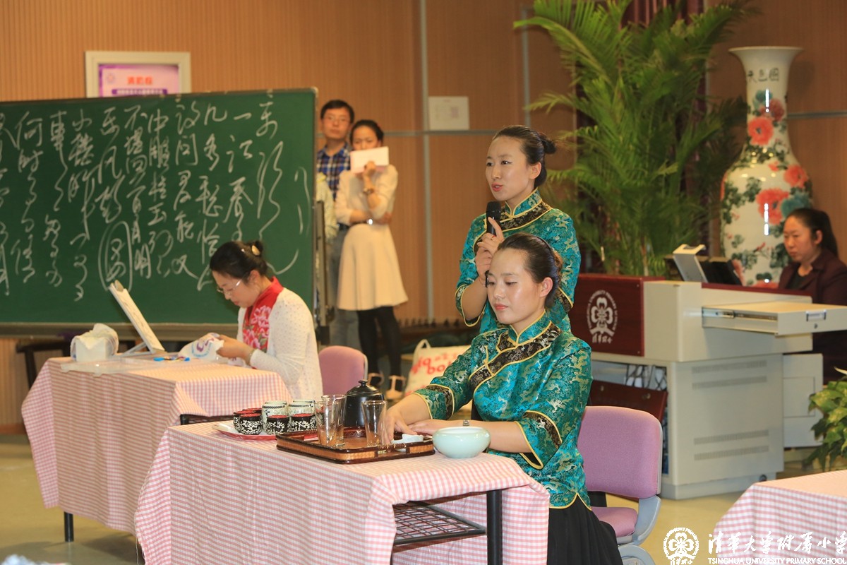数学老师练书法,语文老师玩音乐,科学老师写歌曲,体育老师跳恰恰,教辅老师展茶艺……您一定觉得老师怎么都开始“不务正业”呢?那您可错了,这是5月9日下午发生在清华附小的一场精彩的个人才艺秀这场大戏中的精彩片段。