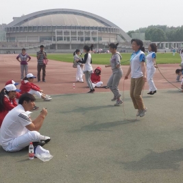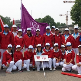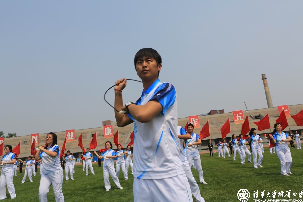 5月8日下午,清华附小23名教师参加了清华大学第四十一届教职工运动会。附小教师代表喊着“每天体育‘三个一’,健康工作五十年”的口号,迈着整齐的步伐列队走过主席台,得到全场师生的一致好评。随后大家还参加了团体操表演、健身球表演、各项目比赛以及运动会裁判工作。