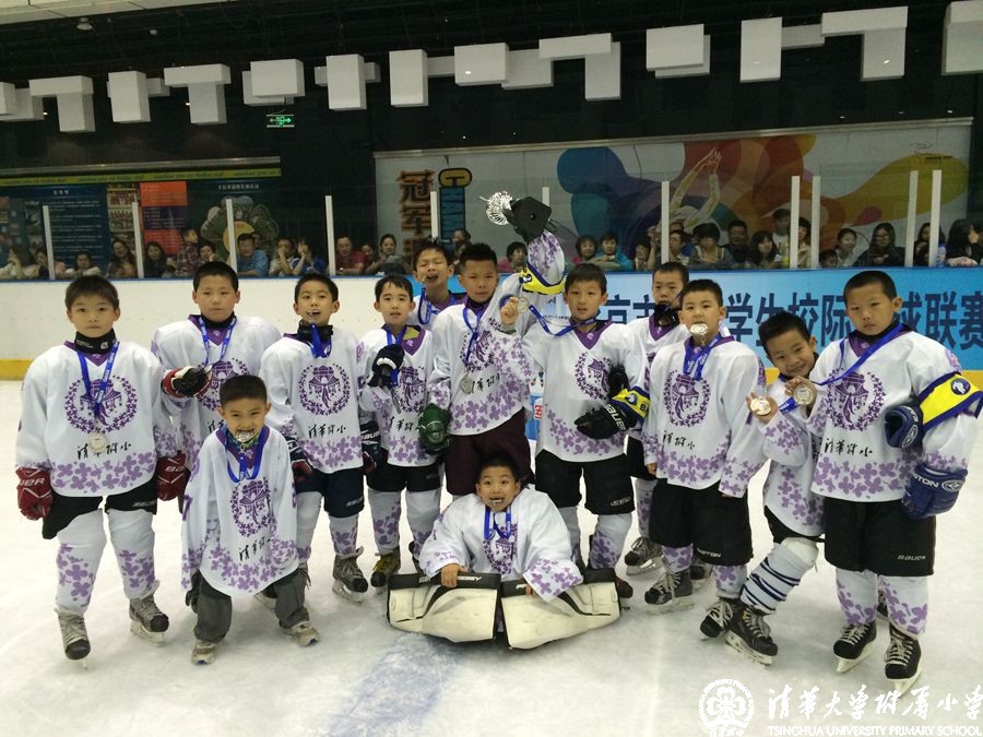 上周,我校冰球队参加了在朝阳大悦城冠军球场举办的2014年“协会杯”北京市中小学生校际冰球联赛。为期5天的循环赛中,我校冰球队分别以3:1胜实验小学、14:0胜实验第二小学、1:4负景山小学、10:0胜花家地小学、7:2胜北京外国语实验学校,以4胜1负小组第一的成绩挺入半决赛。在半决赛中我校力克陈经纶小学部,在最后一分钟打入制胜一球,最终以6:5获胜进入决赛。在决赛中我校与府学小学争夺冠亚军,在常规时间内以3:3打平,在点球大战中惜败于对手,最终获得亚军。